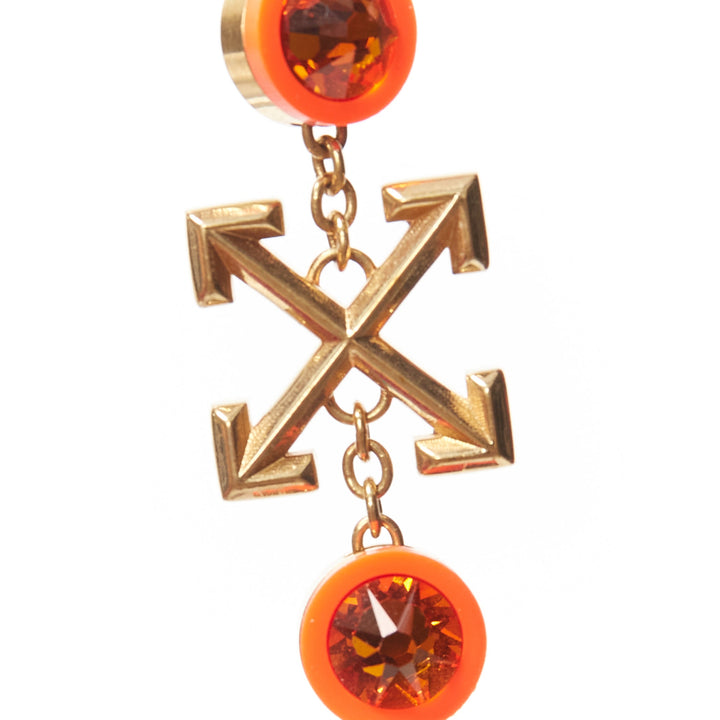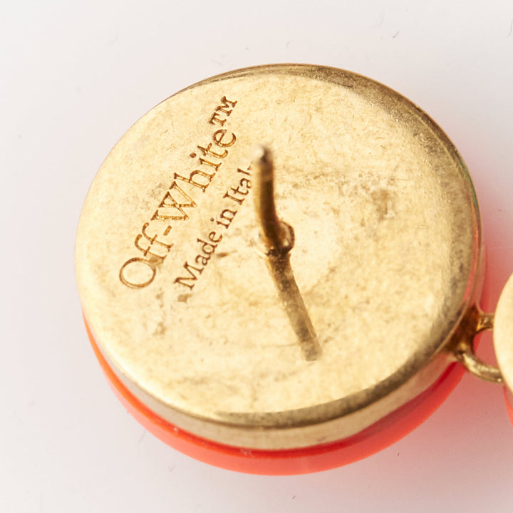 OFF WHITE neon orange gold logo jewel rhinestone drop pin earrings pair
