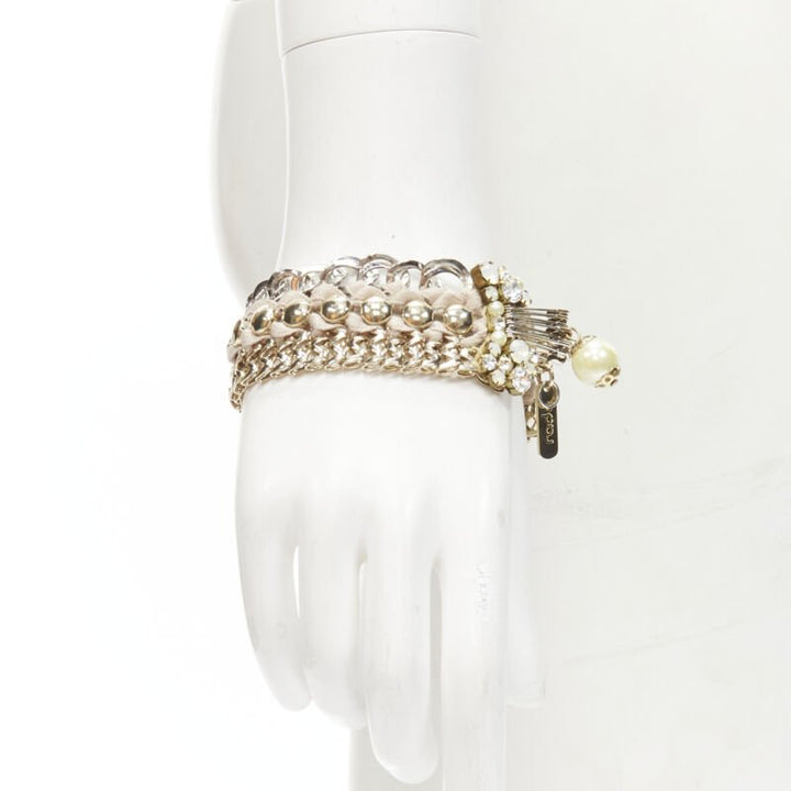RADA mixed gold silver braided crystal rhinestones pearl charm bracelet