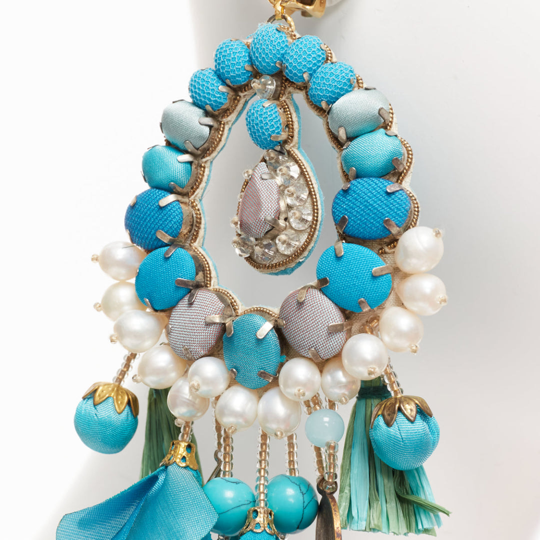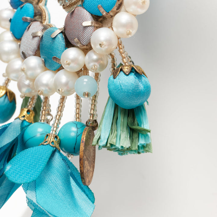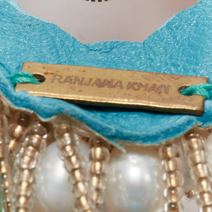 RANJANA KHAN turquoise cream faux pearl stone clip on earrings Pair