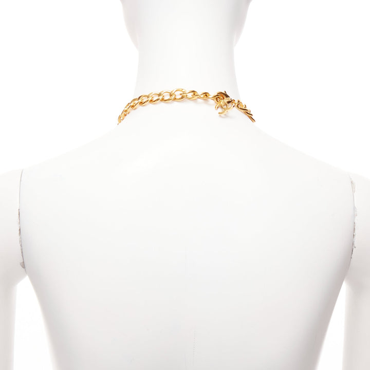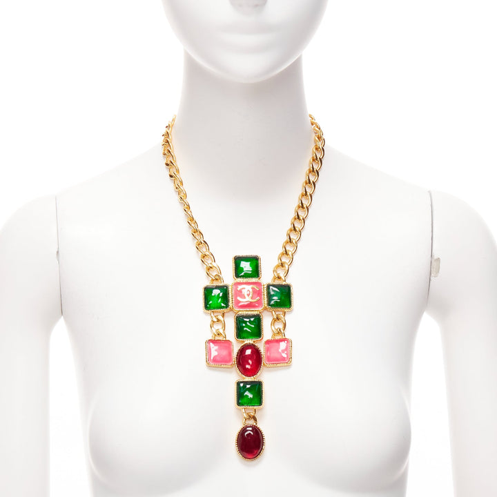 rare CHANEL B20K green pink red gripoix gold CC logo byzantine princess necklace