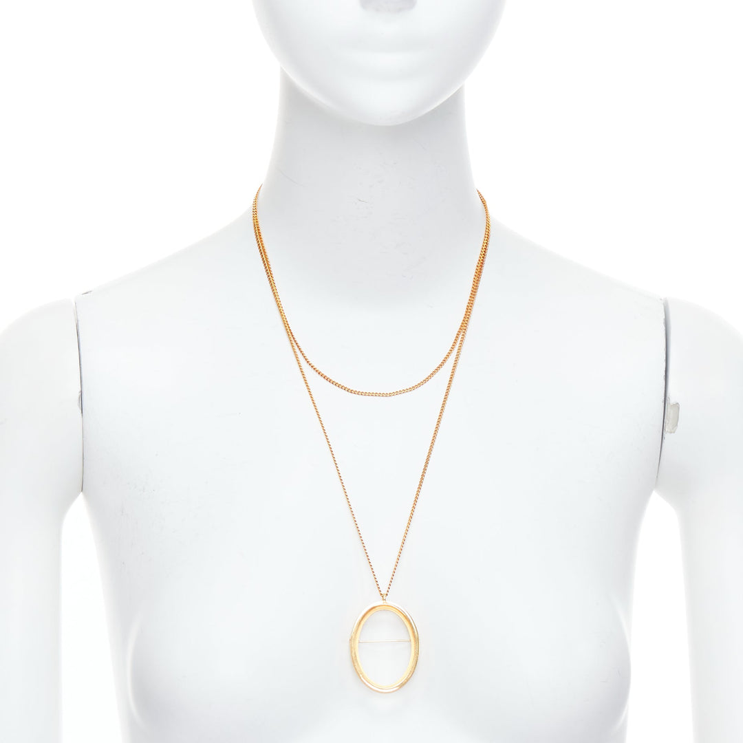 rare MAISON MARGIELA gold hollow frame pin pendant double chain necklace