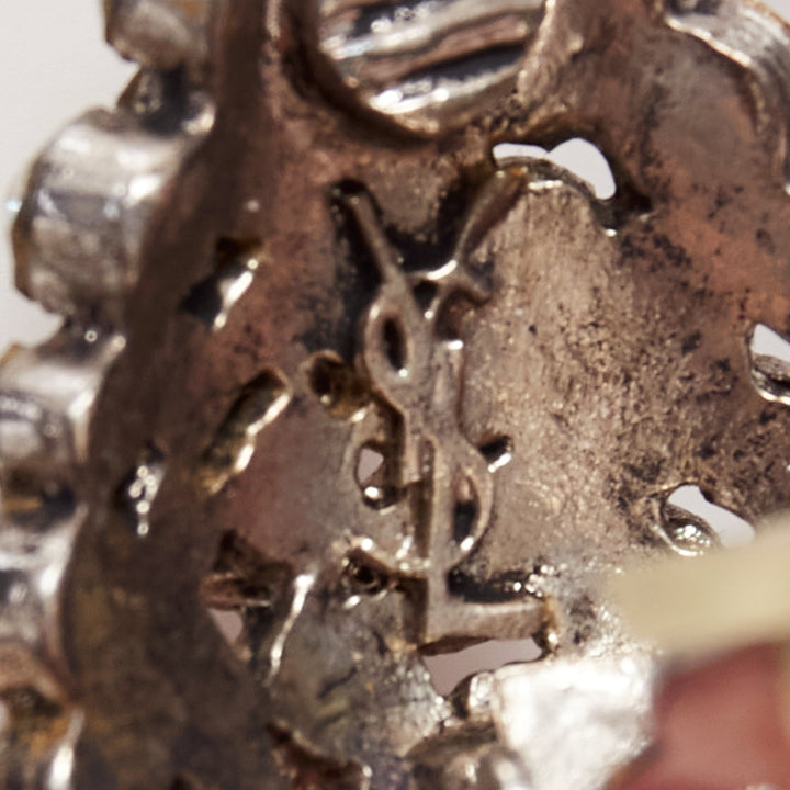 SAINT LAURENT clear crystal spiral fish bone dangling clip on earrings