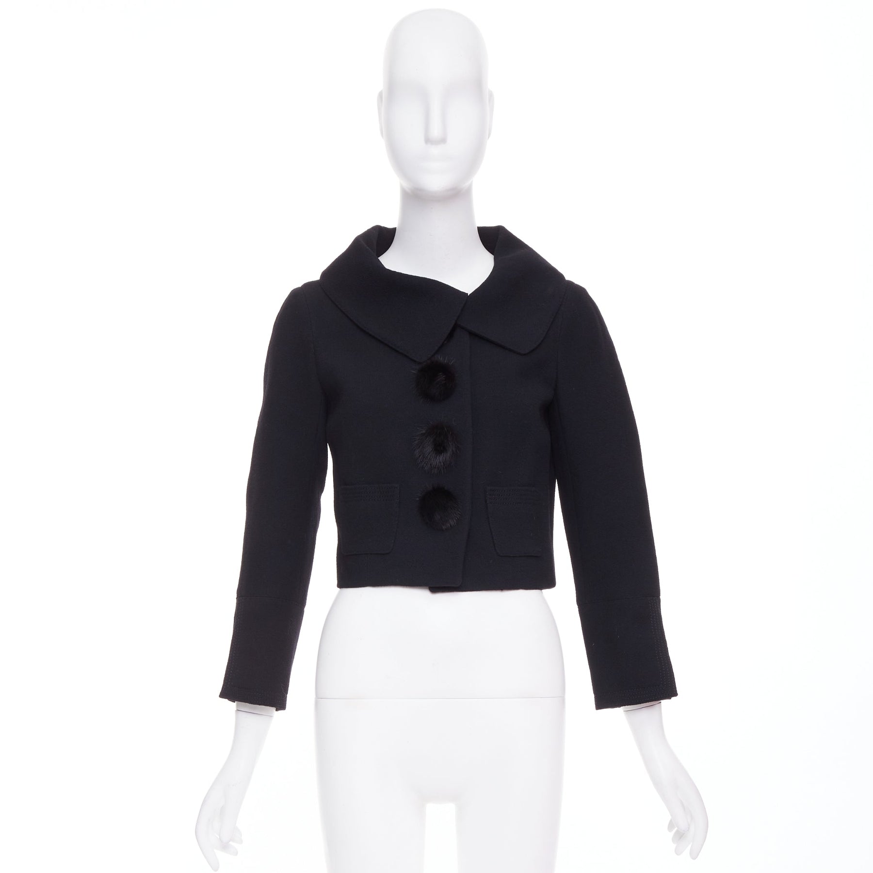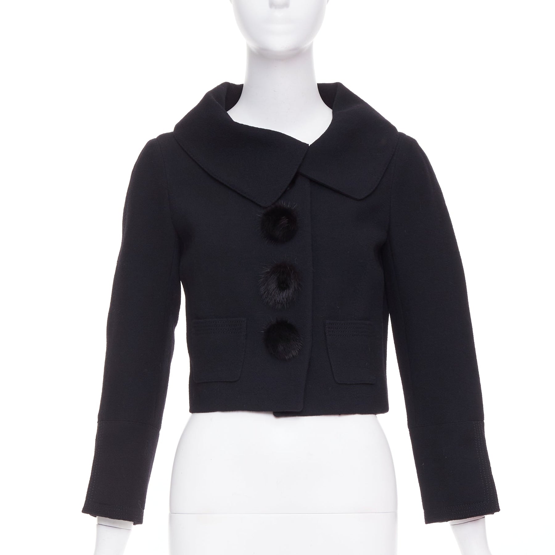 LOUIS VUITTON 2007 black wool crepe Mink fur button cropped jacket FR38 M
