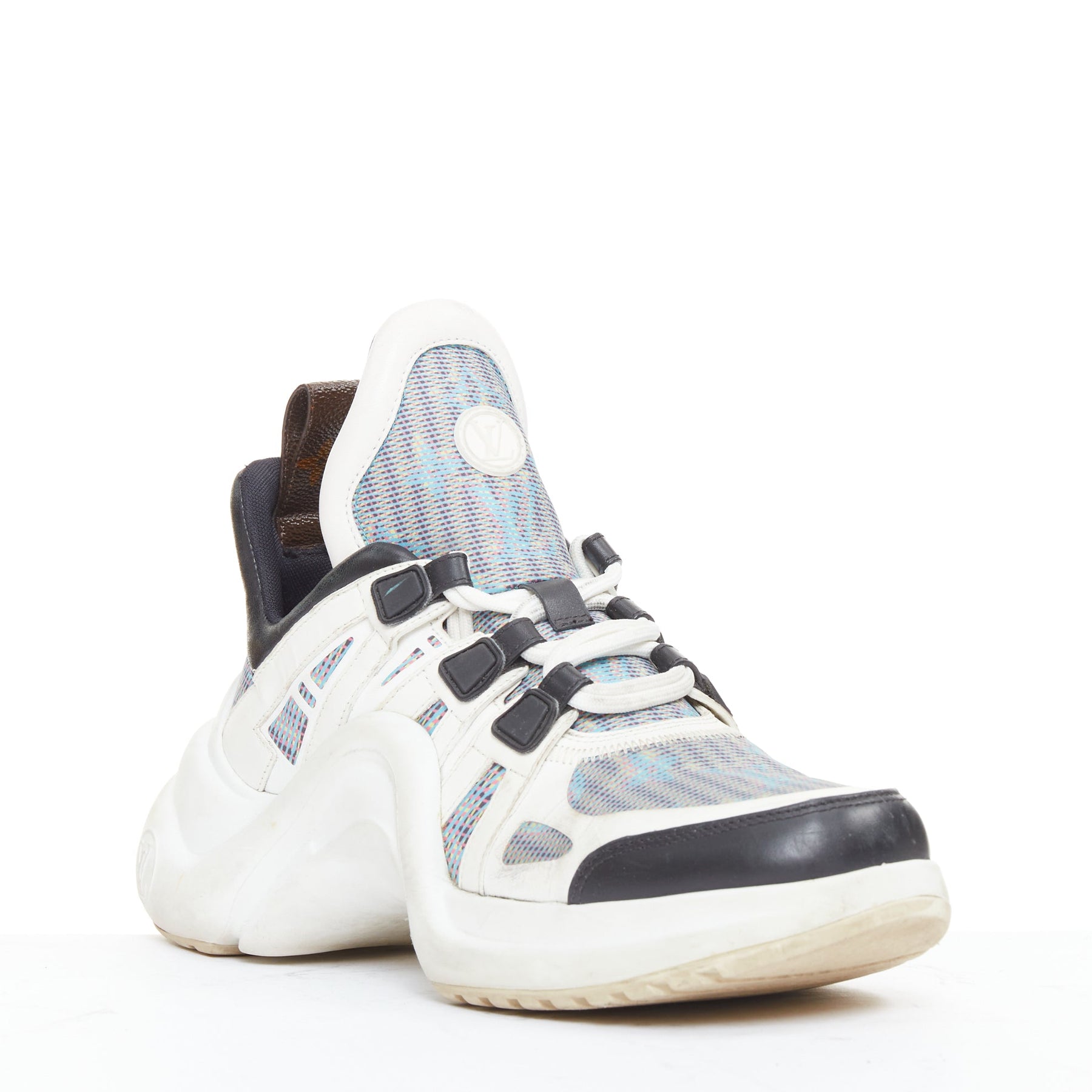 LOUIS VUITTON Archlight white leather black blue monogram chunky sneakers EU39