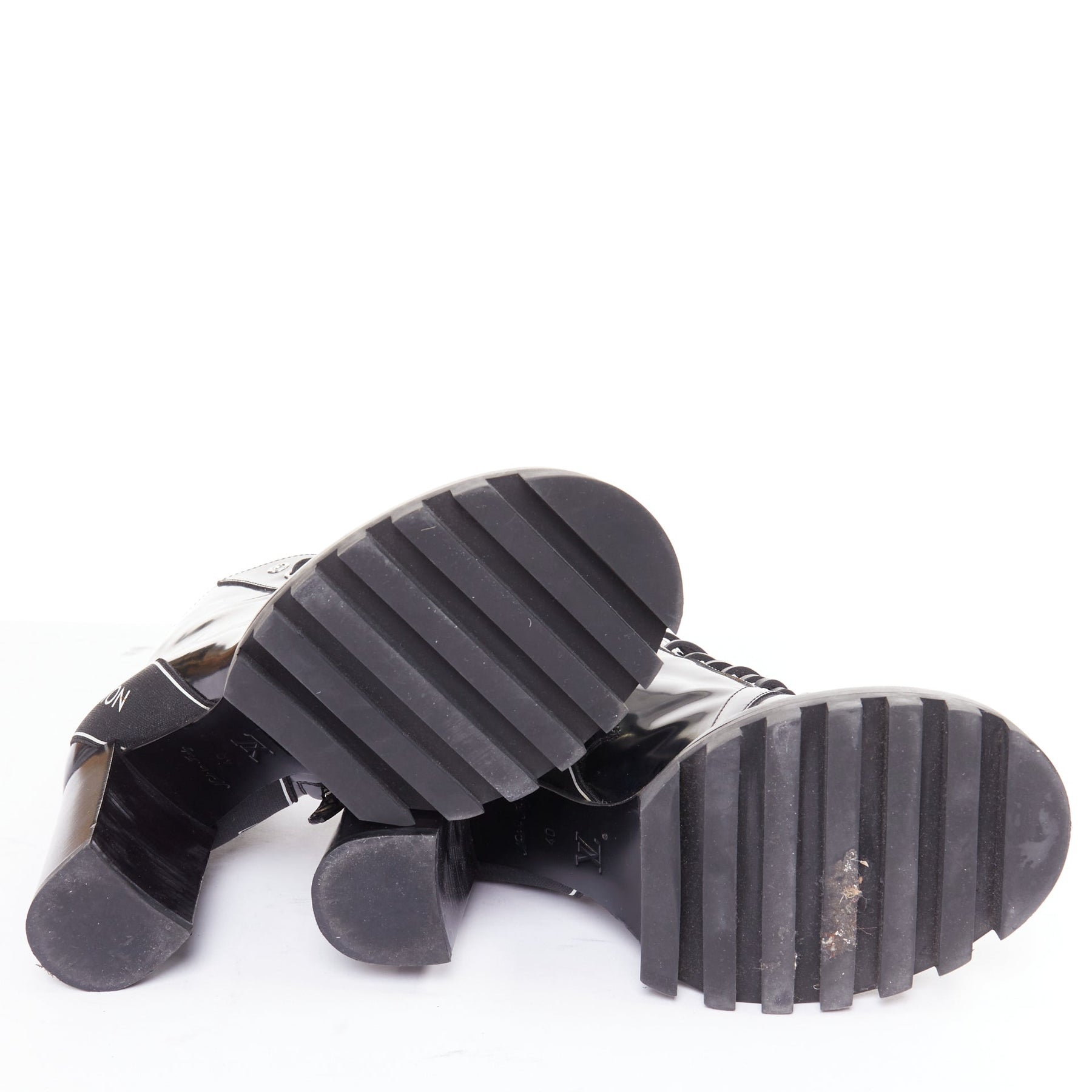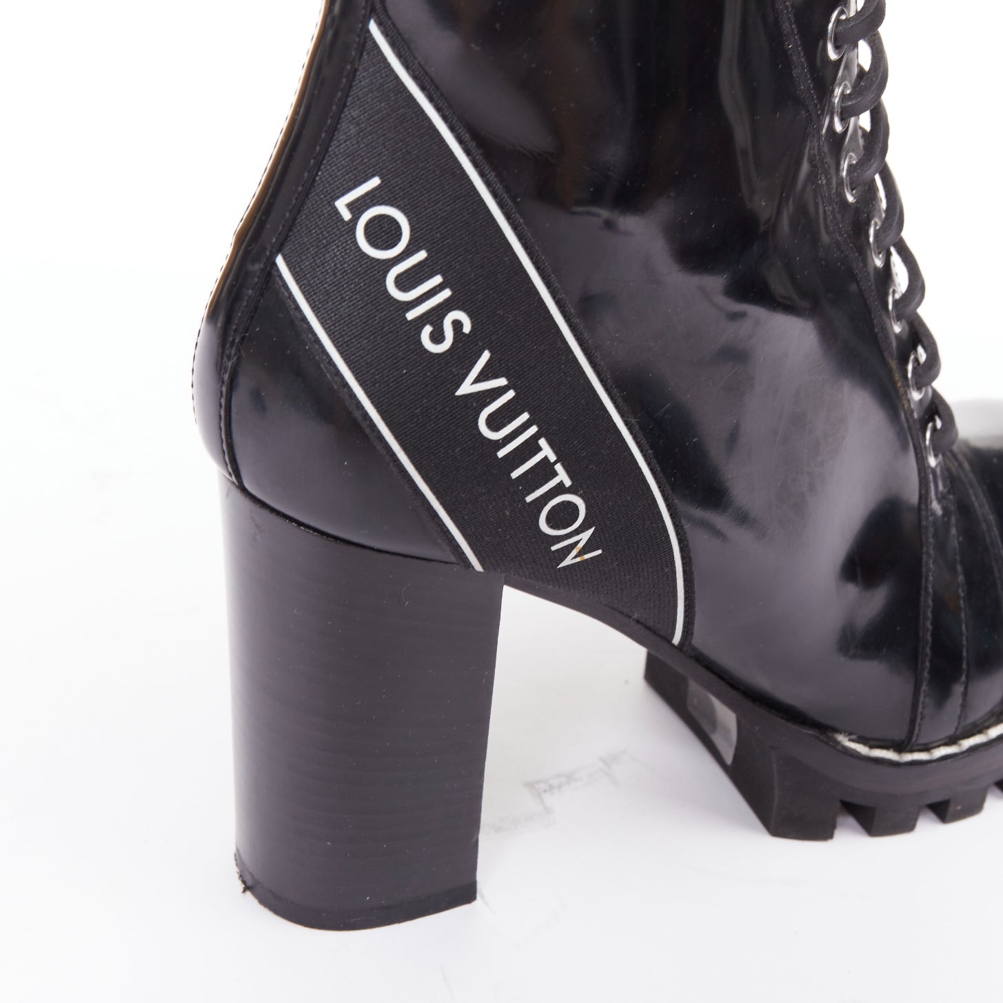LOUIS VUITTON Star Trail black shiny leather logo tape army ankle boots EU40