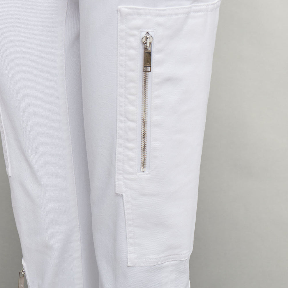 DIOR HOMME white cotton blend silver zip cargo pockets straight jeans 29"