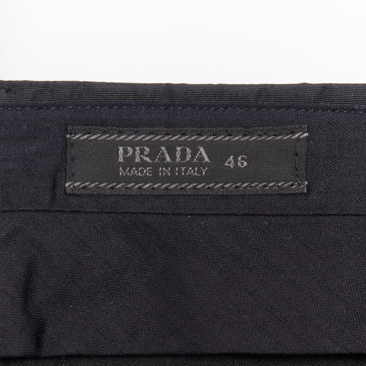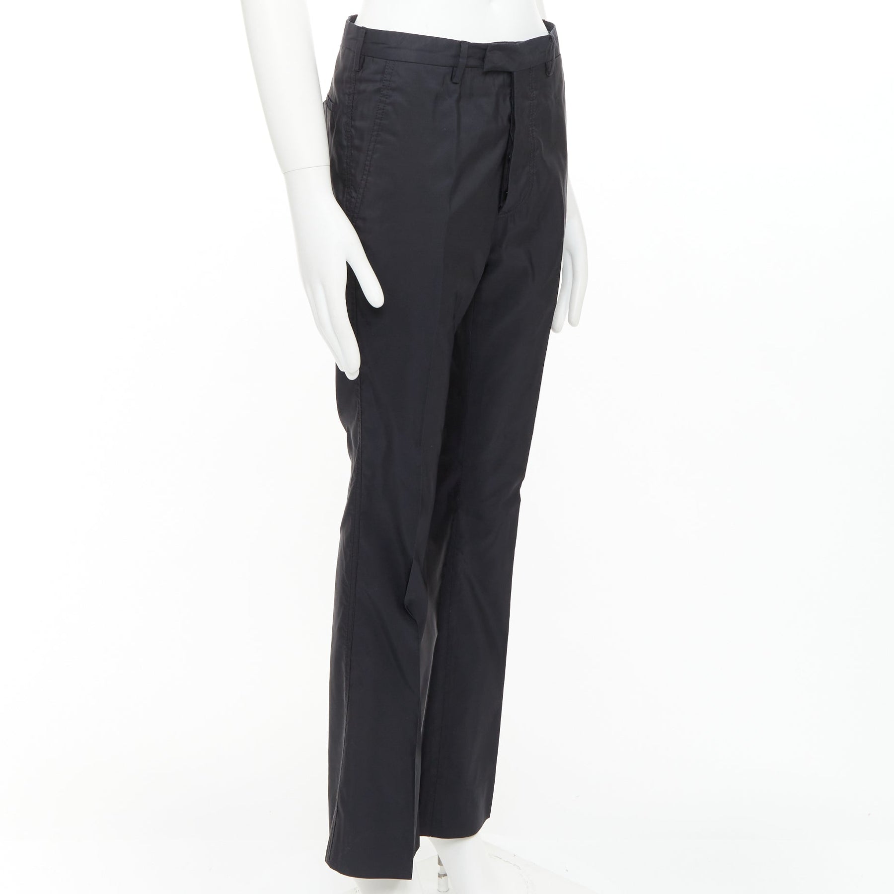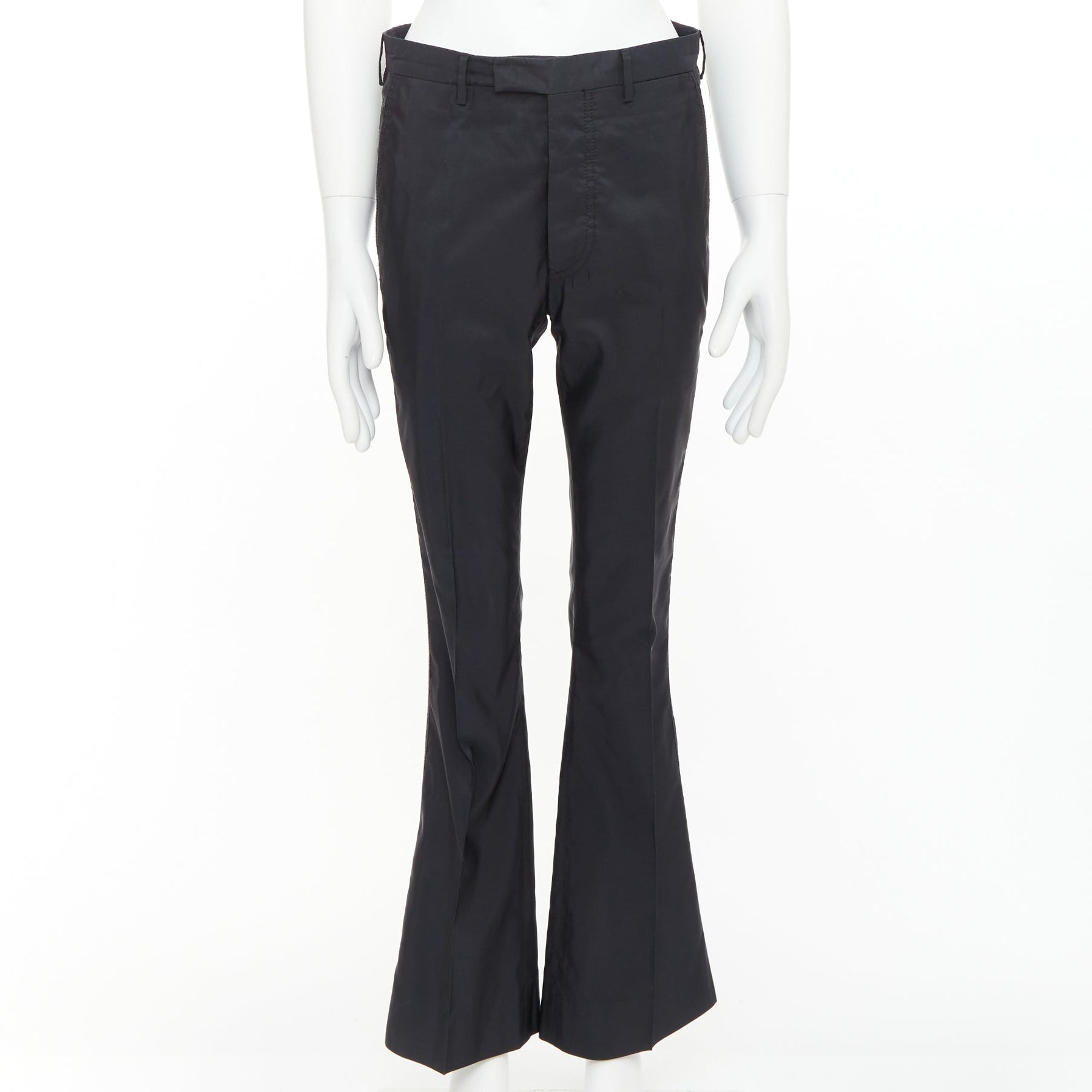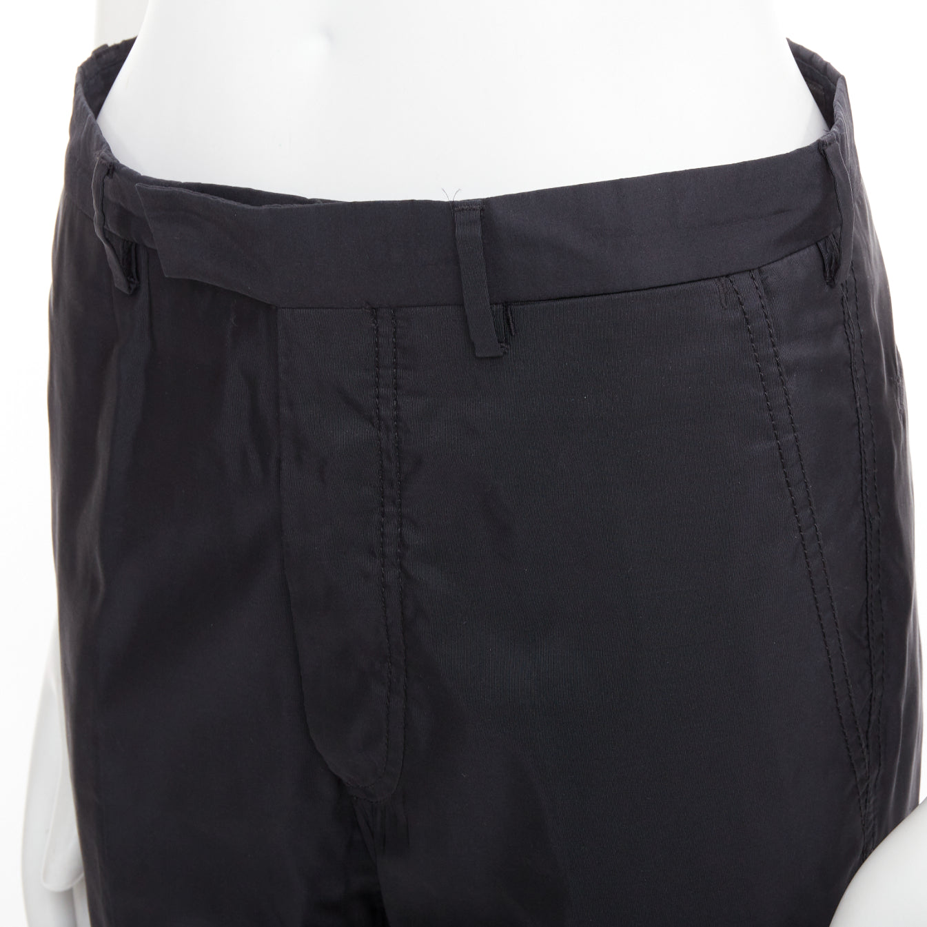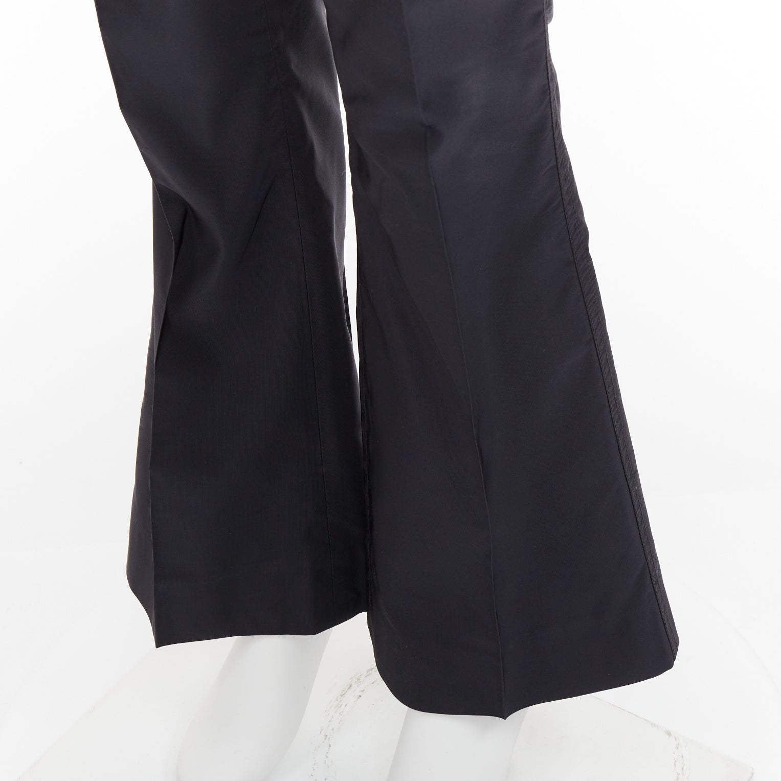 PRADA black shiny nylon mid waisted flare boot cut crop trousers IT46 S