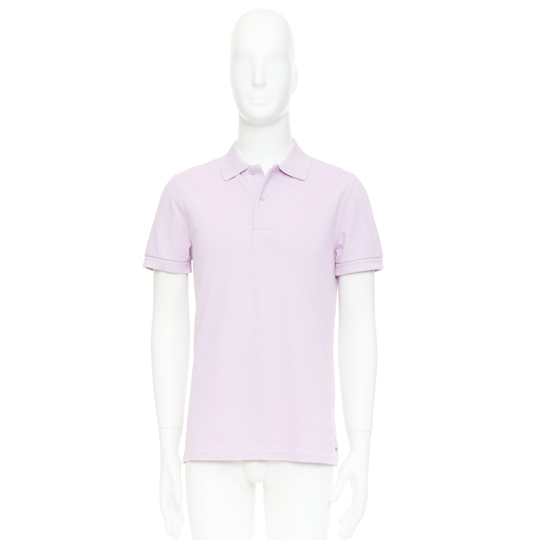 TOM FORD light purple pink cotton TF logo hem pique polo shirt IT48 M
