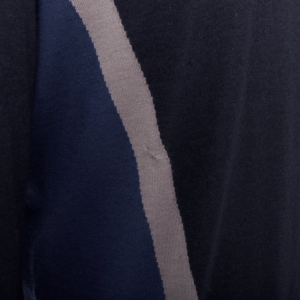BRIONI 100% cashmere navy leather trim side button sweater IT48 M