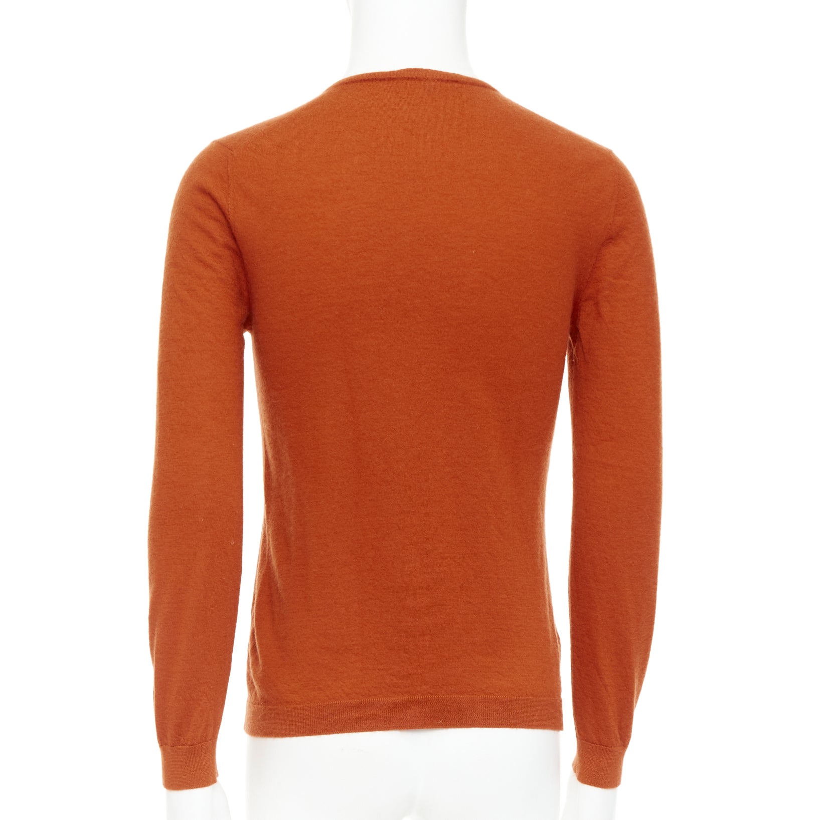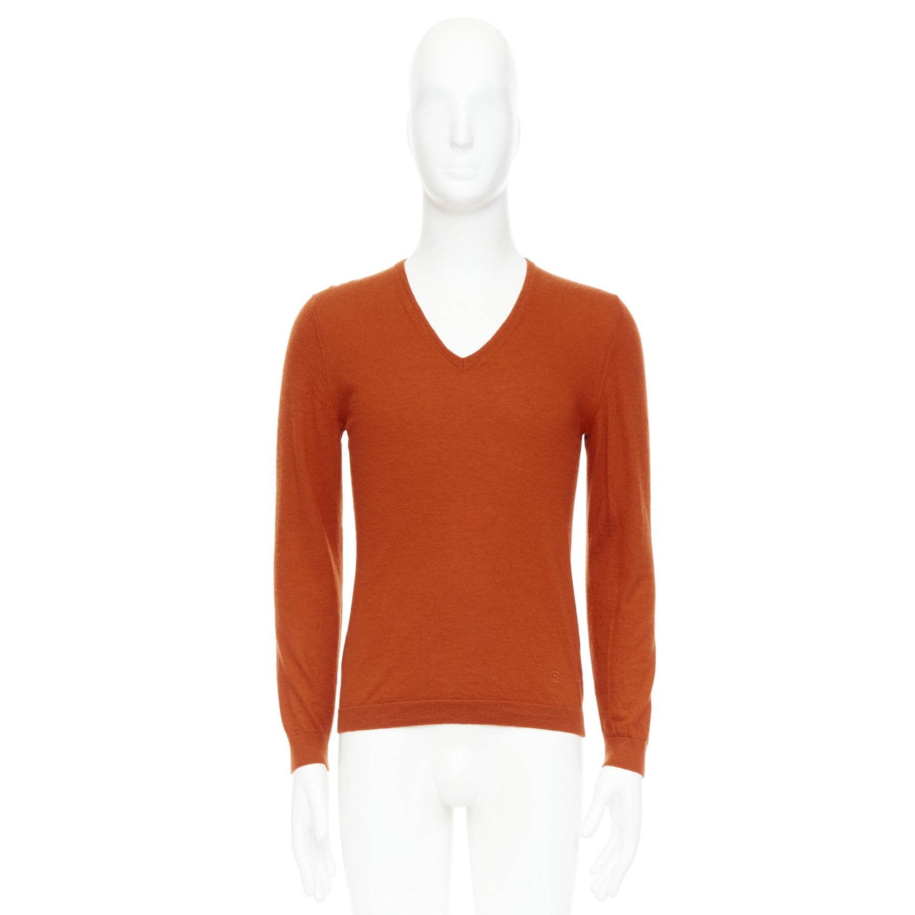 GUCCI 100% cashmere burnt orange V-neck GG logo embroidery sweater L