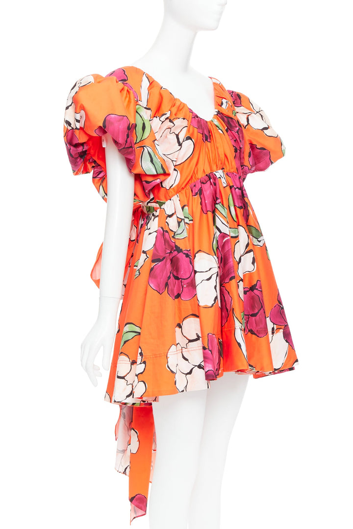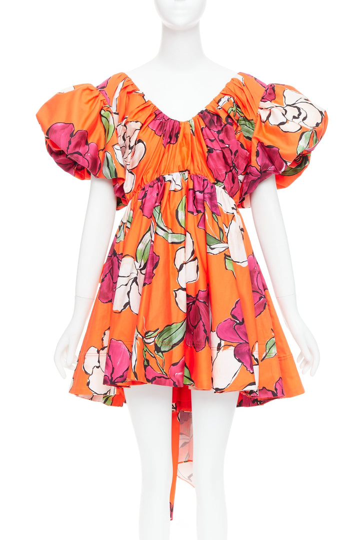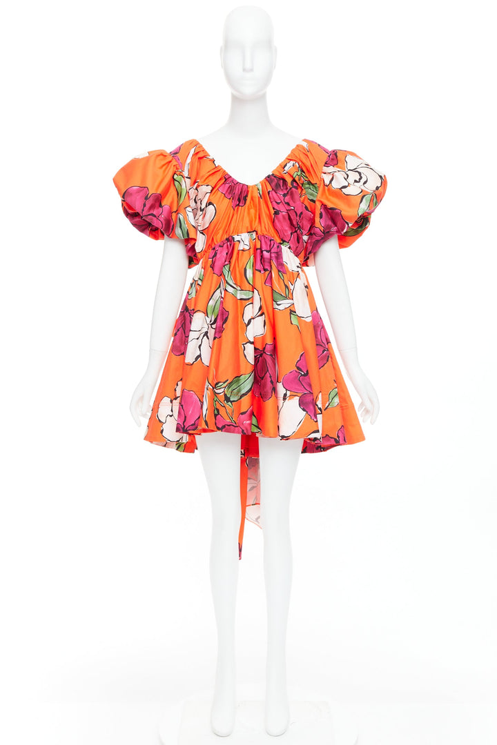 AJE Gretta vivid camellia red floral bow back puff mini dress UK14 XL