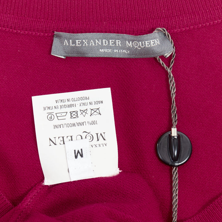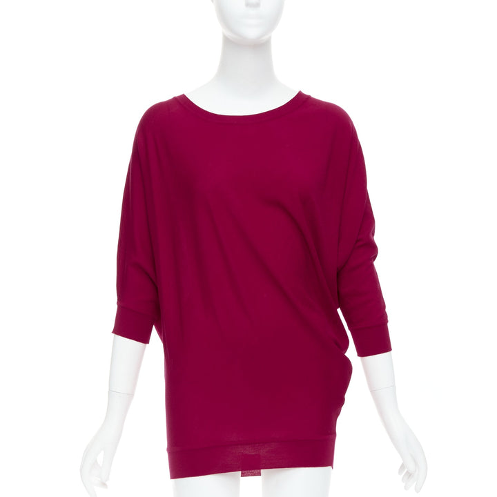 ALEXANDER MCQUEEN raspberry red 100% wool asymmetric drape sweater M