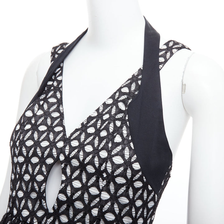 ALICE MCCALL Dust to Glory black eyelet overlay halter mini dress UK8 S