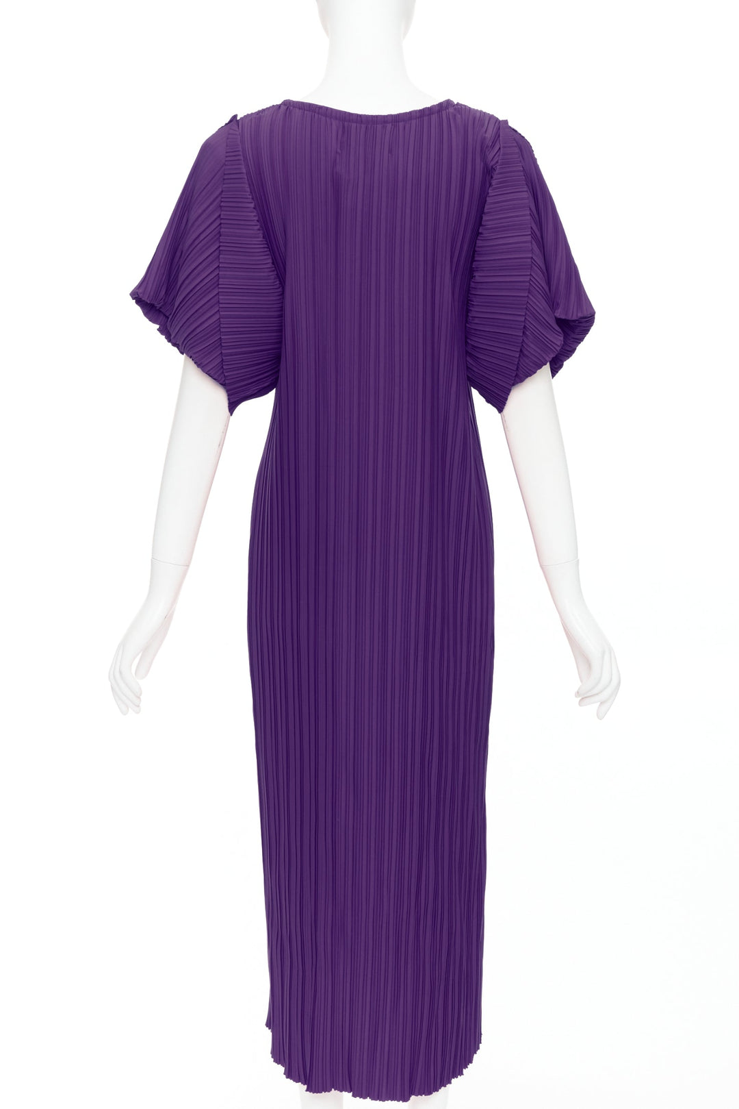 BAMBAH Beach purple plisse puff half sleeve crew neck midi dress