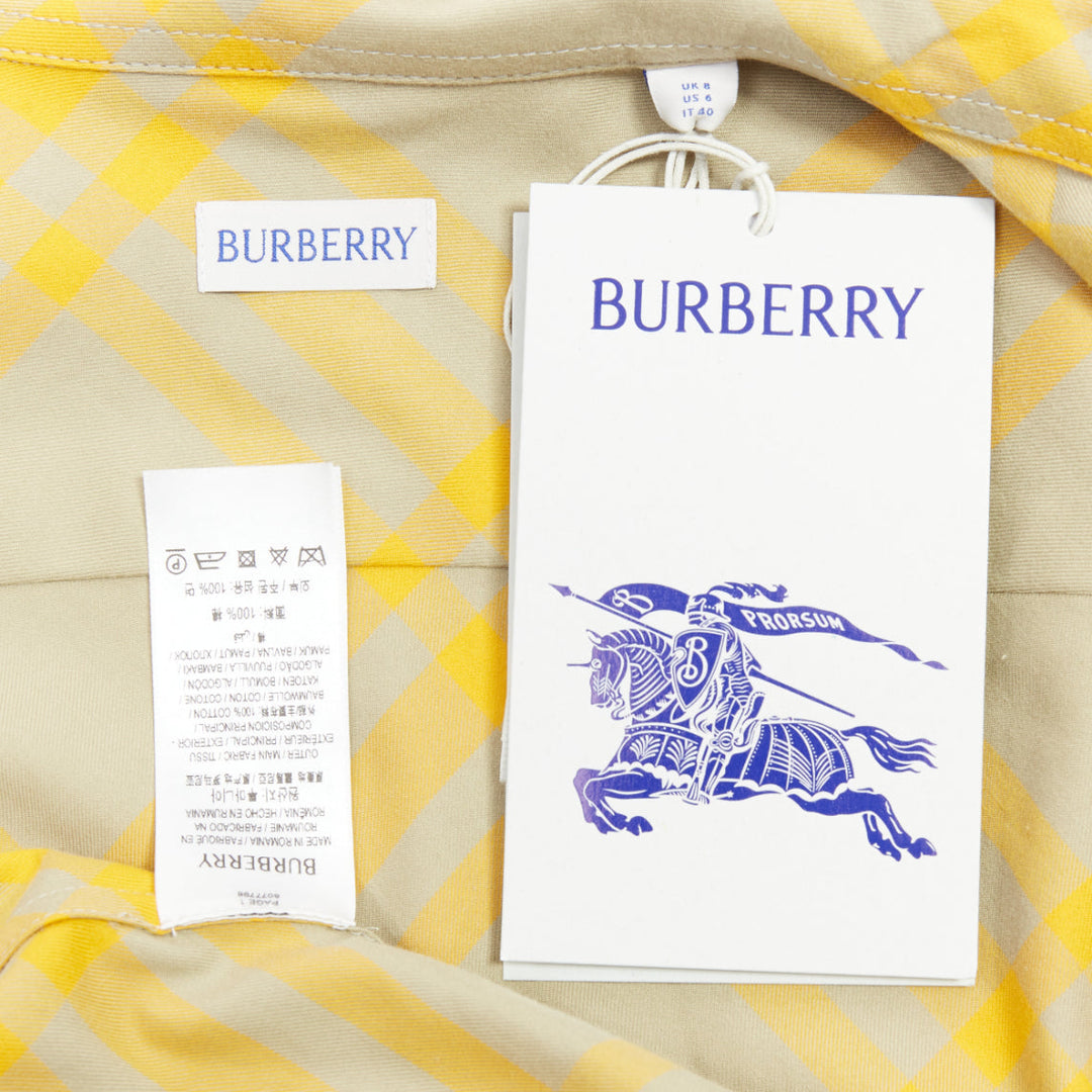 BURBERRY yellow khaki knight House Check long sleeve shirt UK8 S