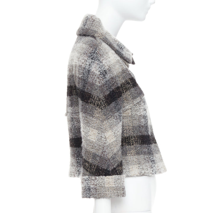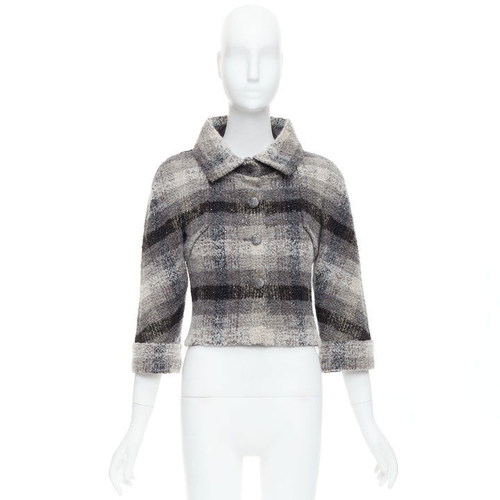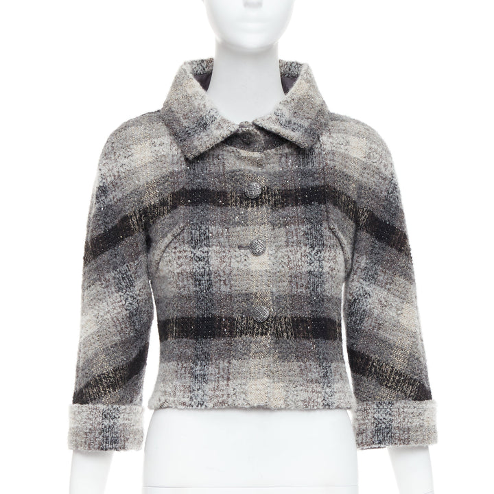 CHANEL 18B Fantasy tweed grey checked sequinned wool crop jacket FR38 M