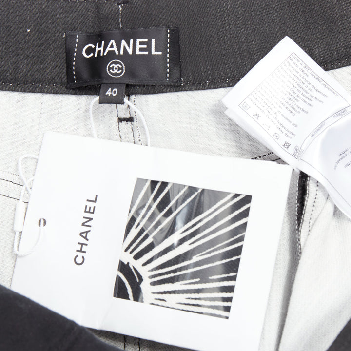 CHANEL 22C black white CC horoscope star print wide leg jeans FR40 L