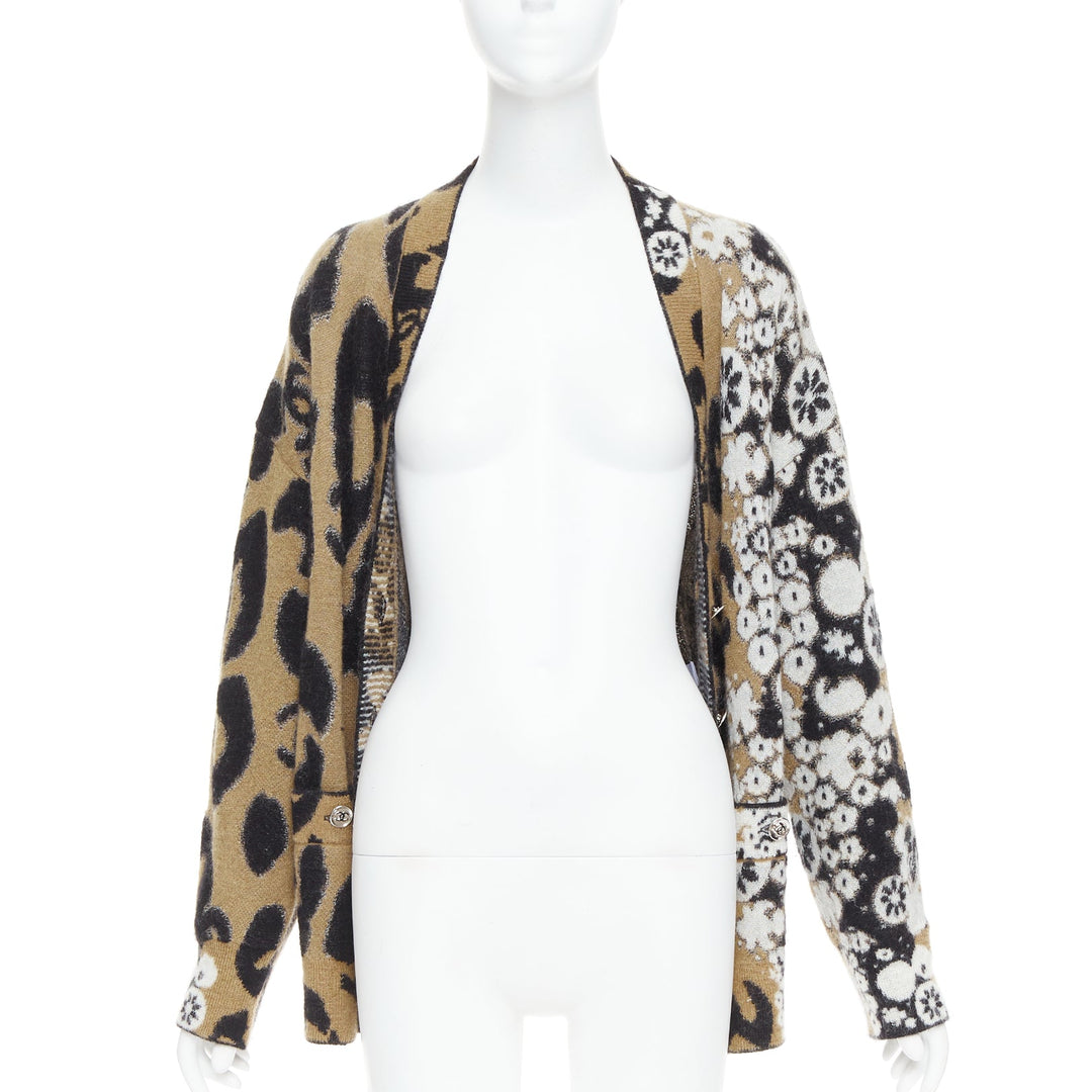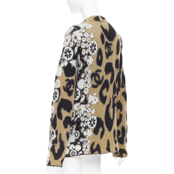 CHANEL A23 Runway brown black CC logo cashmere mohair cardigan FR40 L