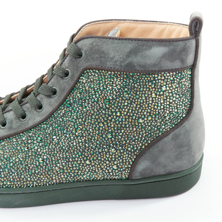 CHRISTIAN LOUBOUTIN Louis Orlato Tsar Green Strass crystals suede high top sneaker EU44