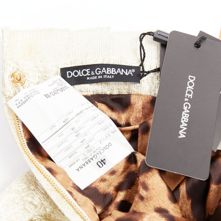 DOLCE GABBANA crystal rhinestone waistband beige brocade cocktail skirt IT40 S