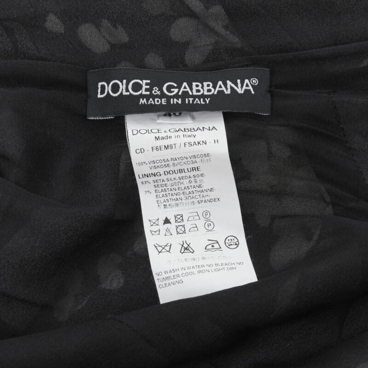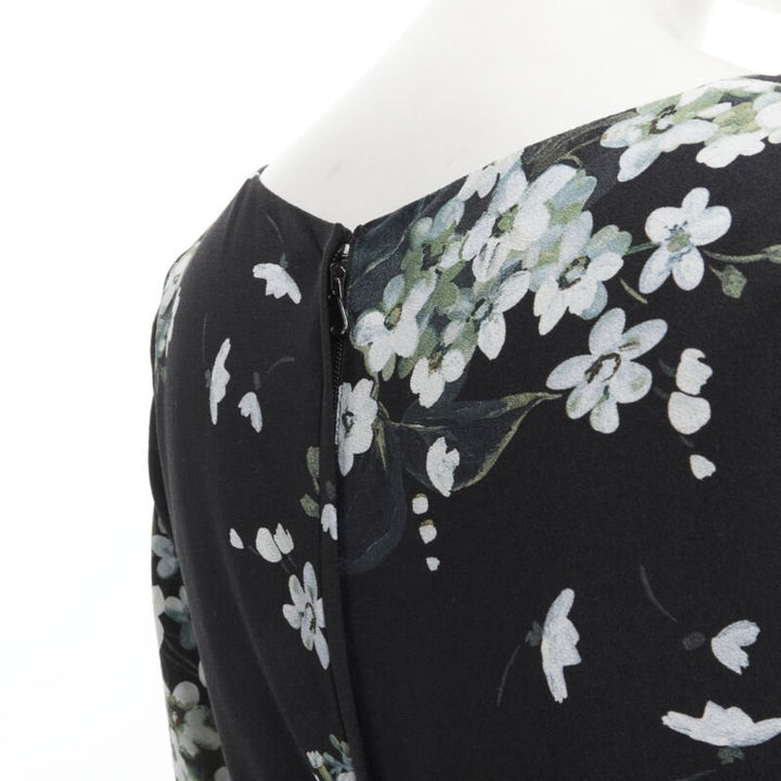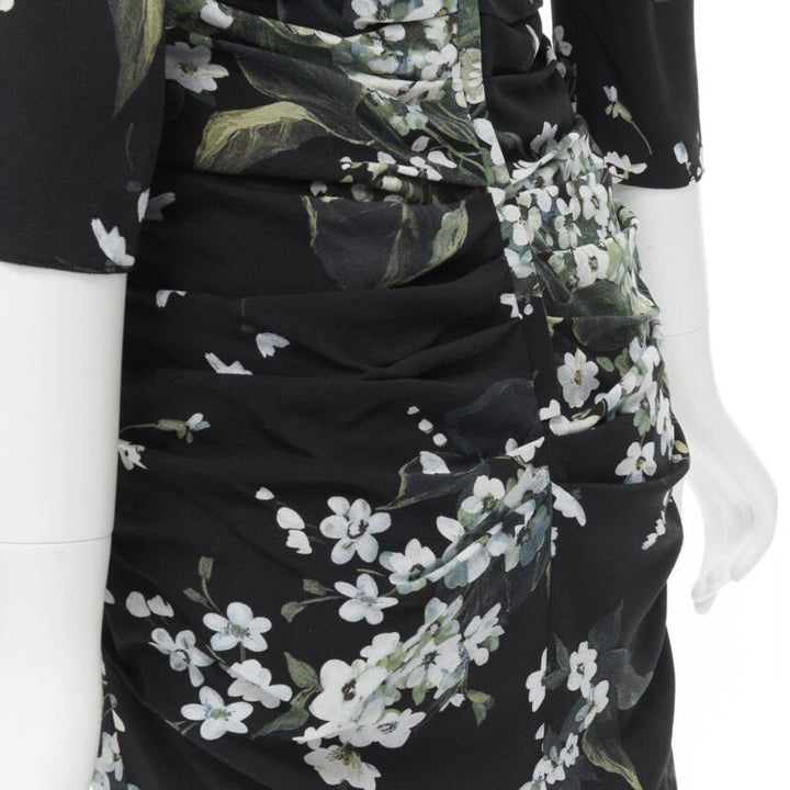 DOLCE GABBANA silk black white green floral print ruched bodycon dress IT40 XS