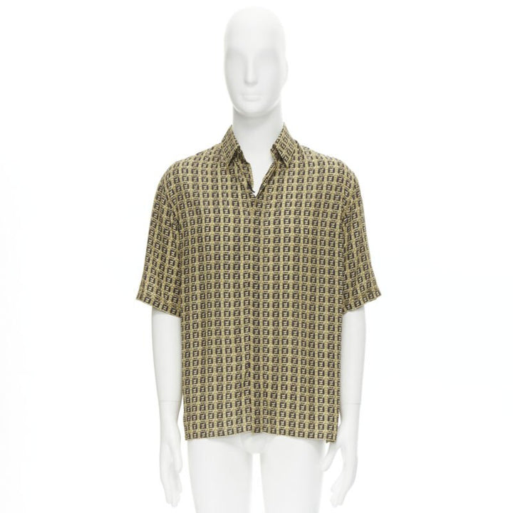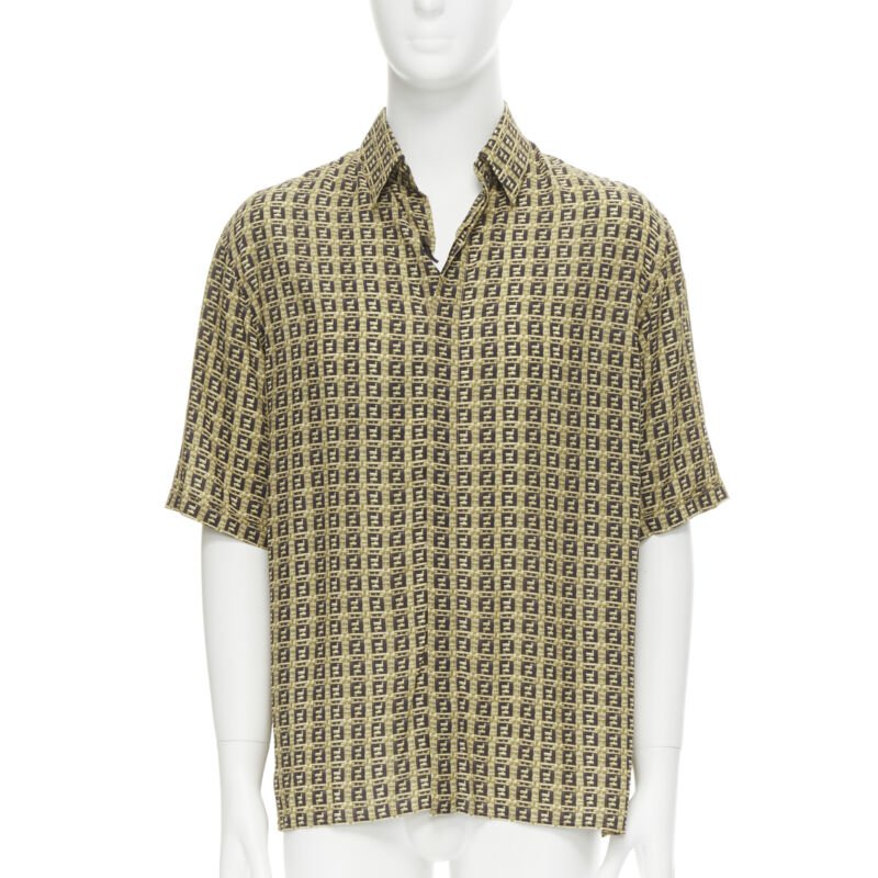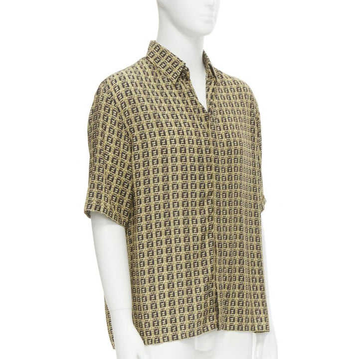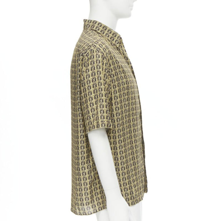 FENDI Forever Bamboo FF Zucca interwoven print bowling summer shirt EU39 M