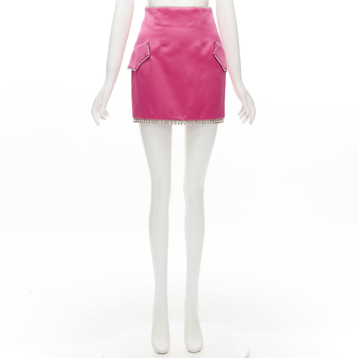 GIUSEPPE DI MORABITO pink satin bling crystal rhinestone mini skirt IT38 XS