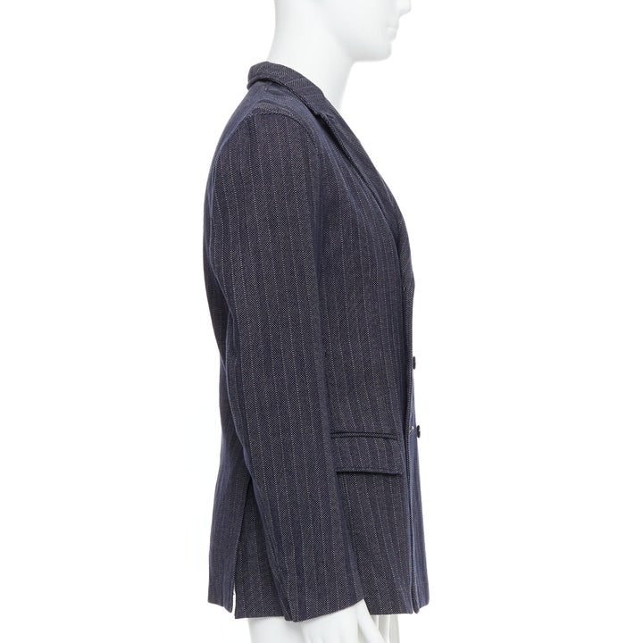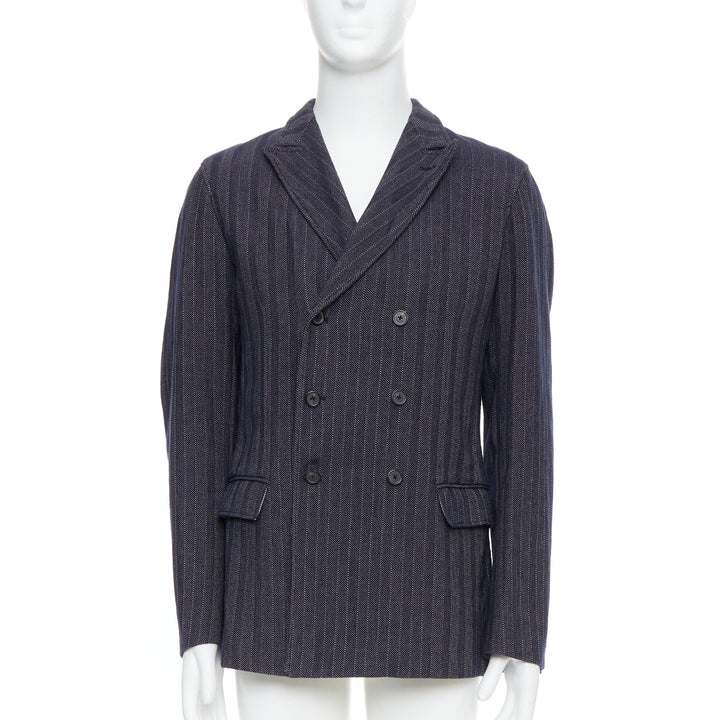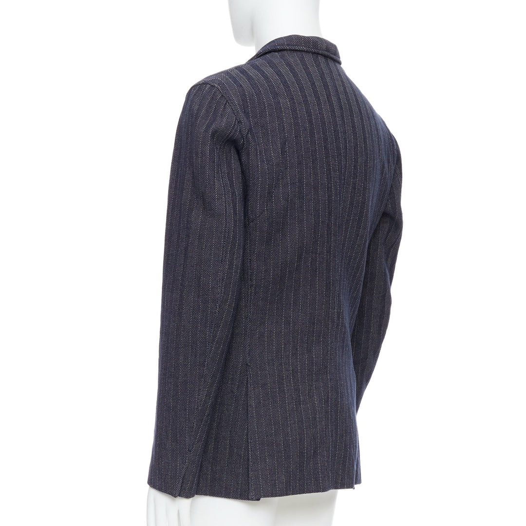 JIL SANDER navy cream cotton striped double breasted blazer IT48 M