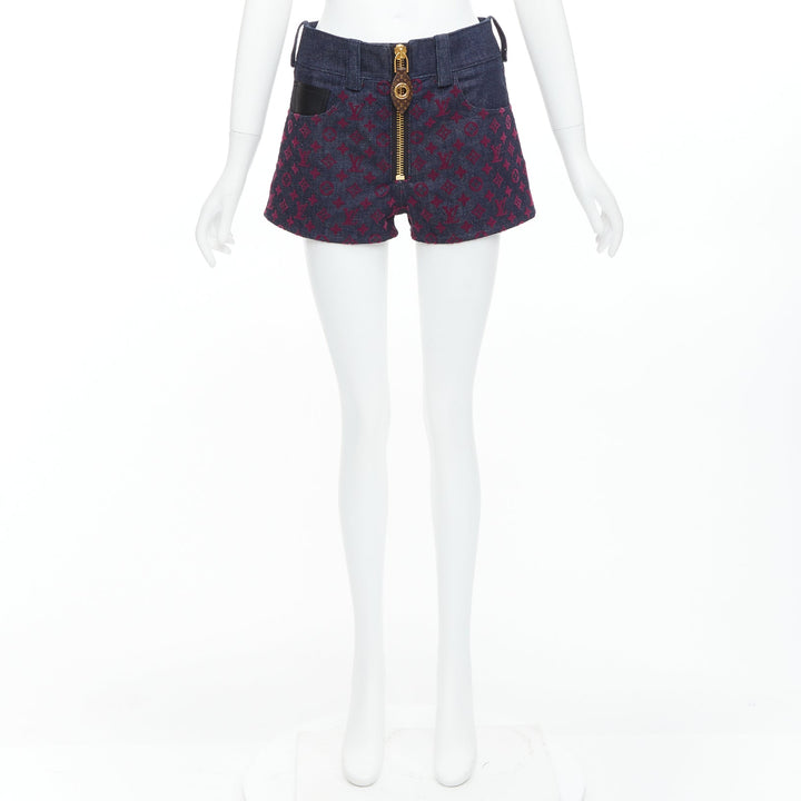 LOUIS VUITTON Flocked Monogram burgundy blue monogram denim shorts XS