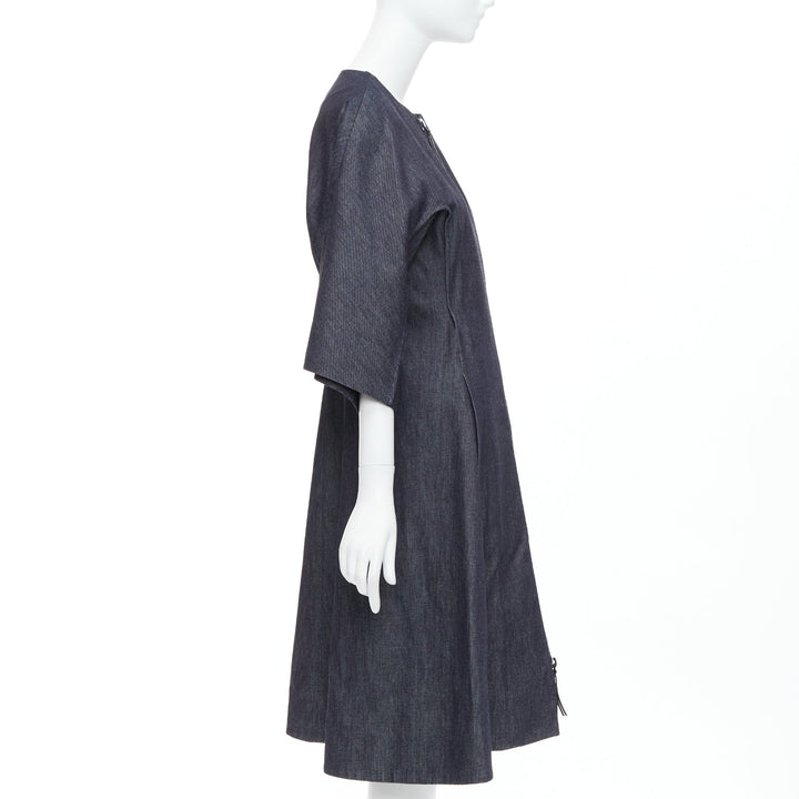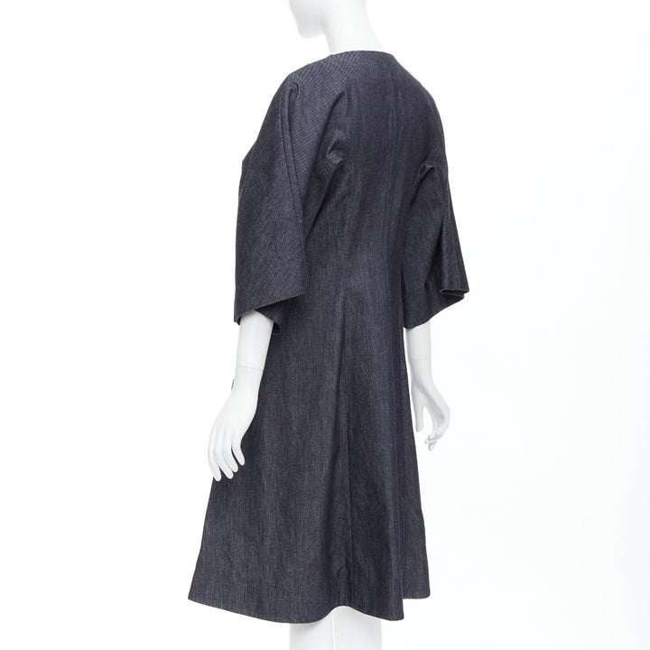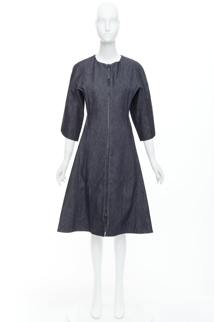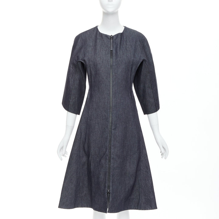 MARNI indigo blue denim zip front dolman sleeve midi dress IT40 S