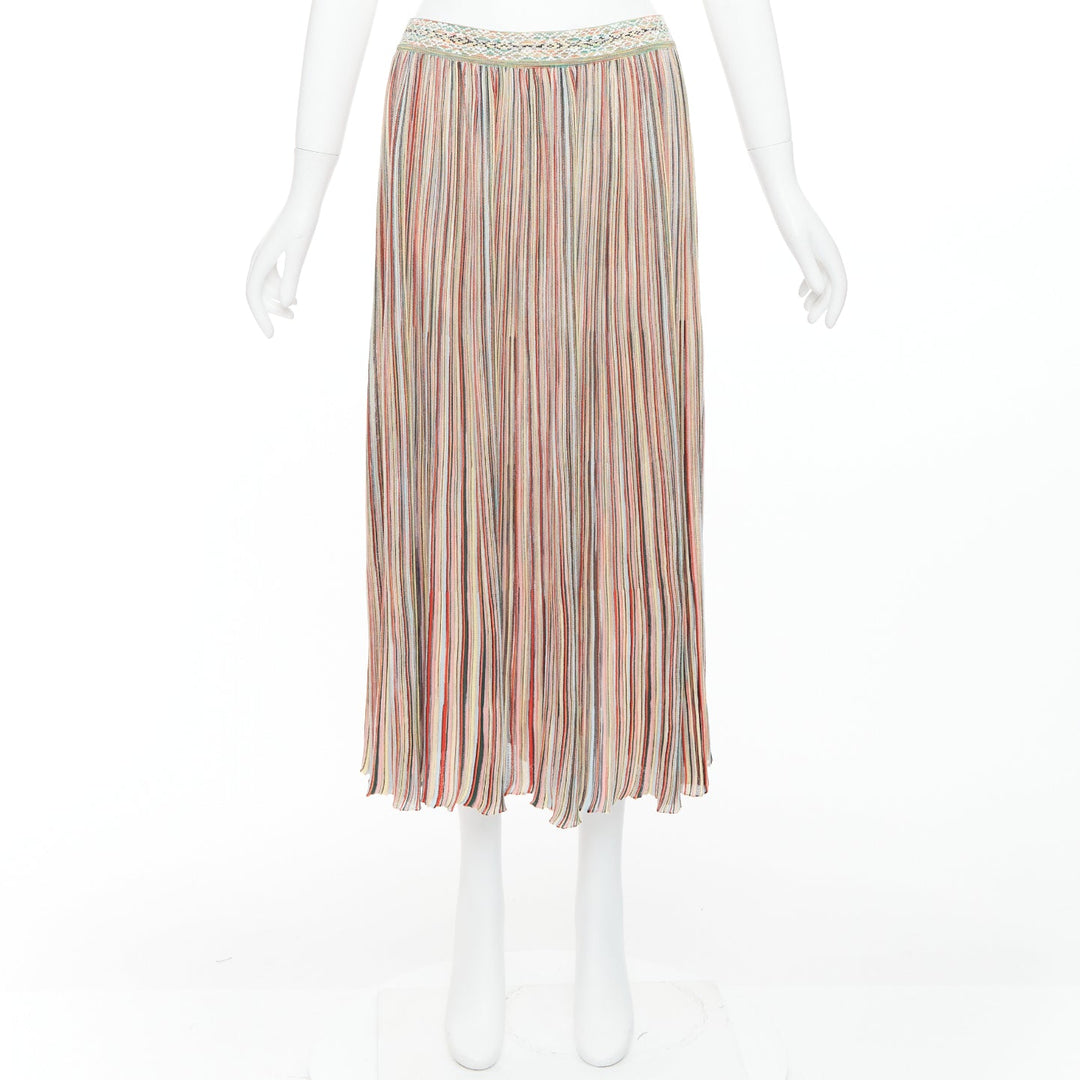 MISSONI multicolor cotton blend signature striped knit midi skirt IT42 M