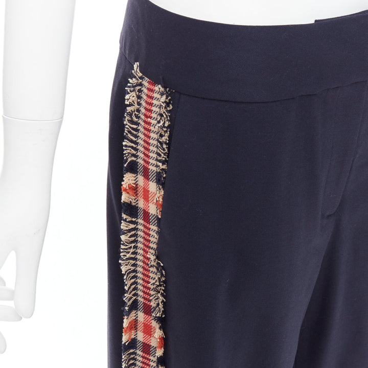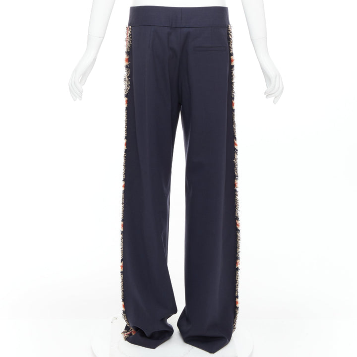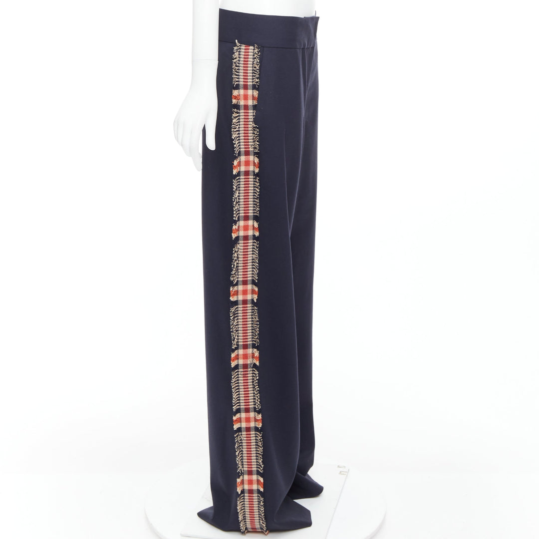 MONSE black virgin wool blend plaid side trim wide trousers US6 M