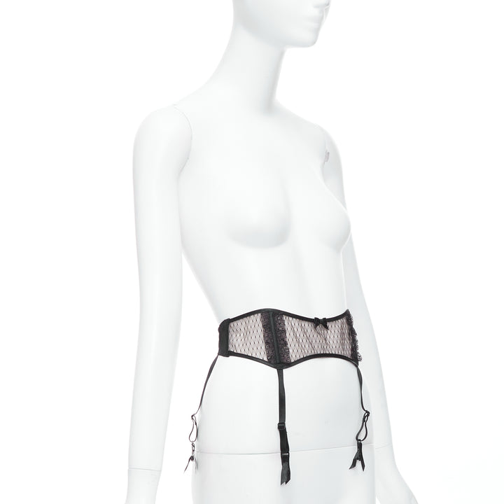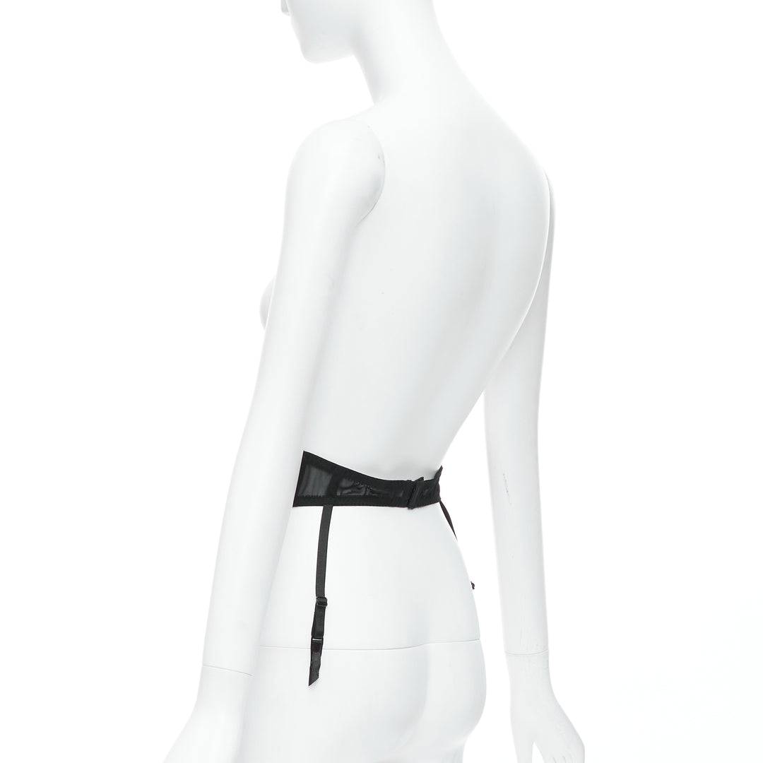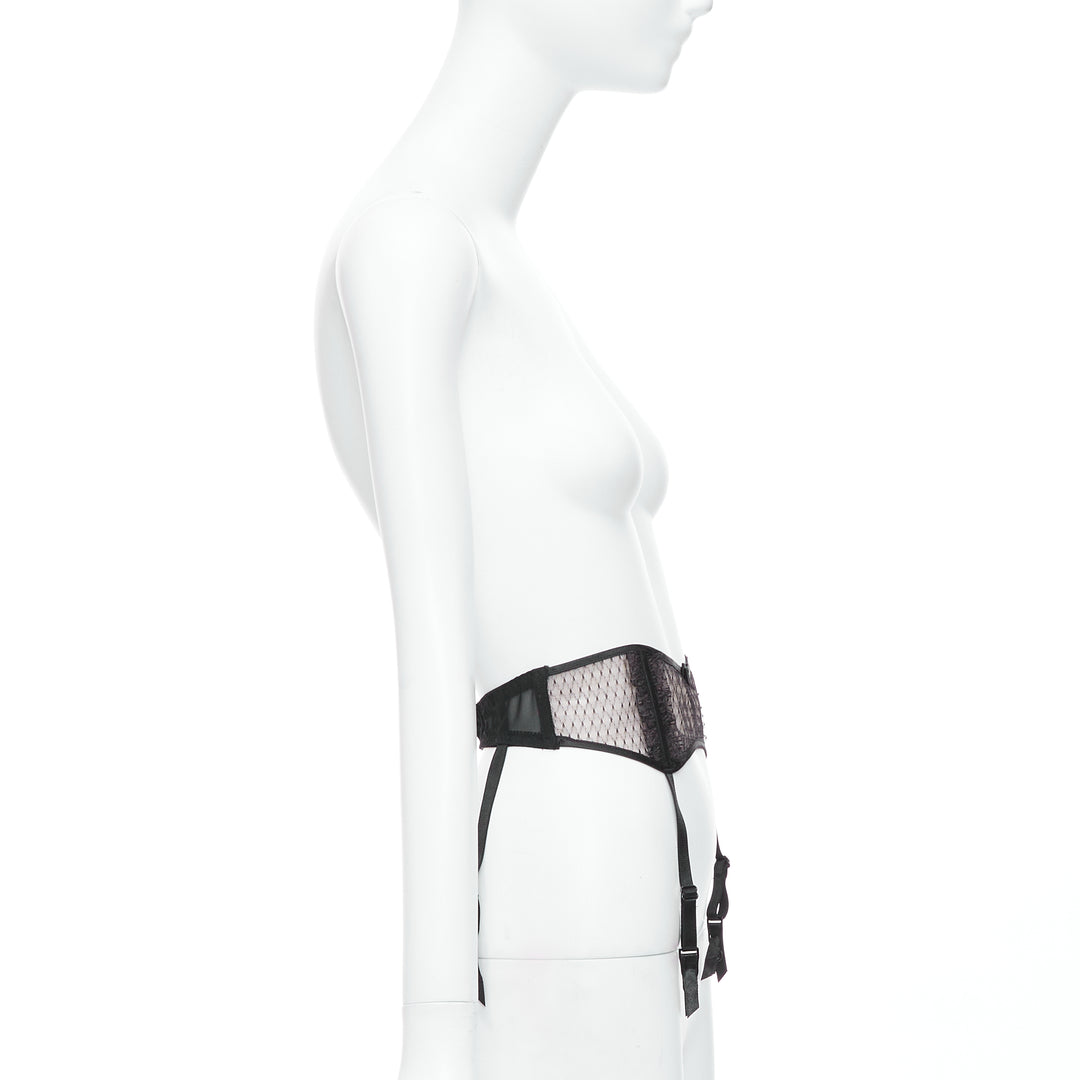 MYLA black intricate lace bow nude mesh garter belt