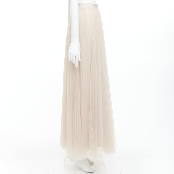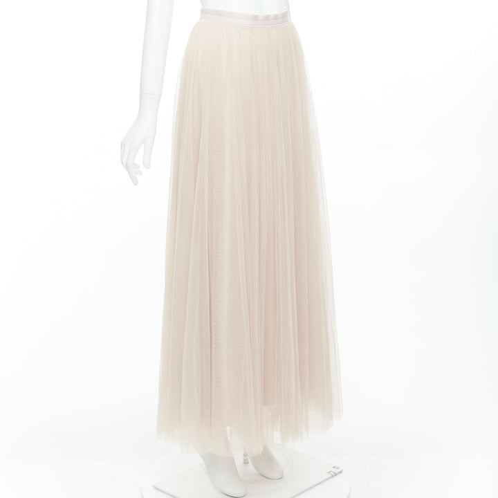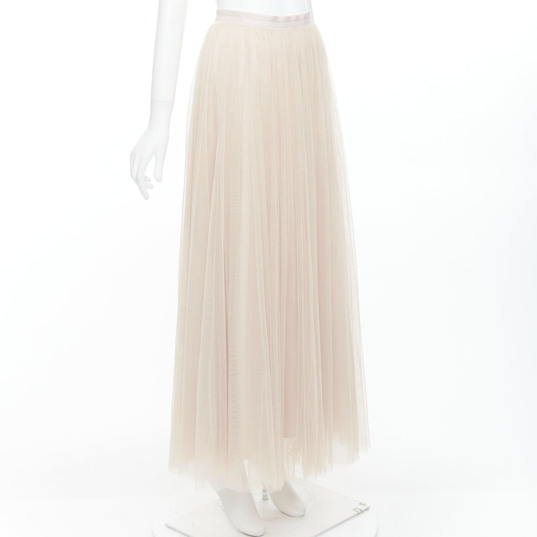 NEEDLE & THREAD champagne tulle ribbon trim waist midi skirt UK6 XS