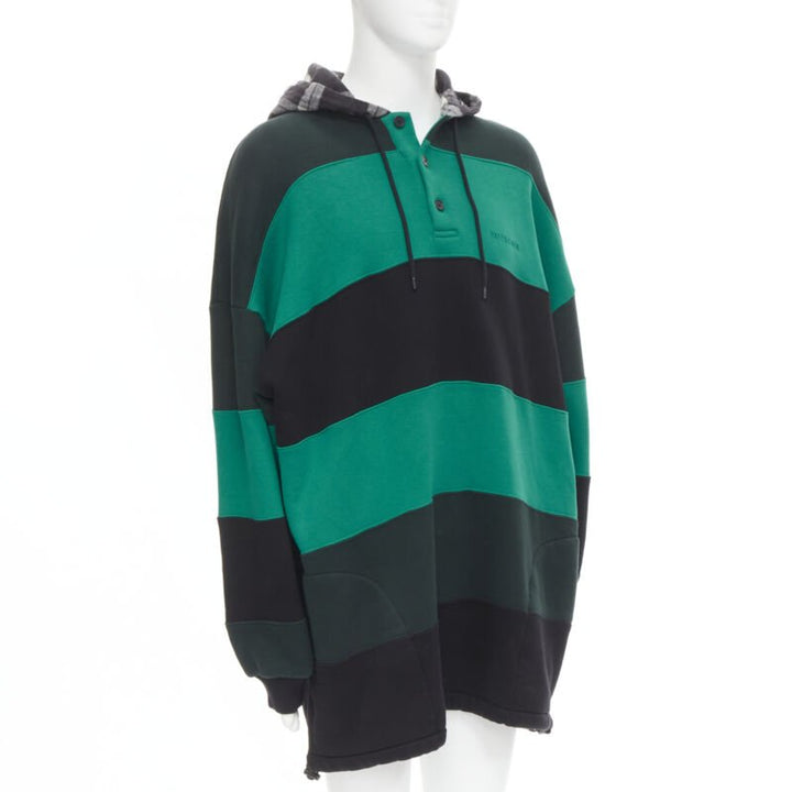 BALENCIAGA Demna green black striped patchwork checked hoodie sweater M