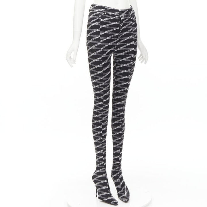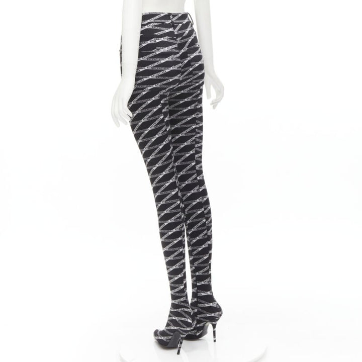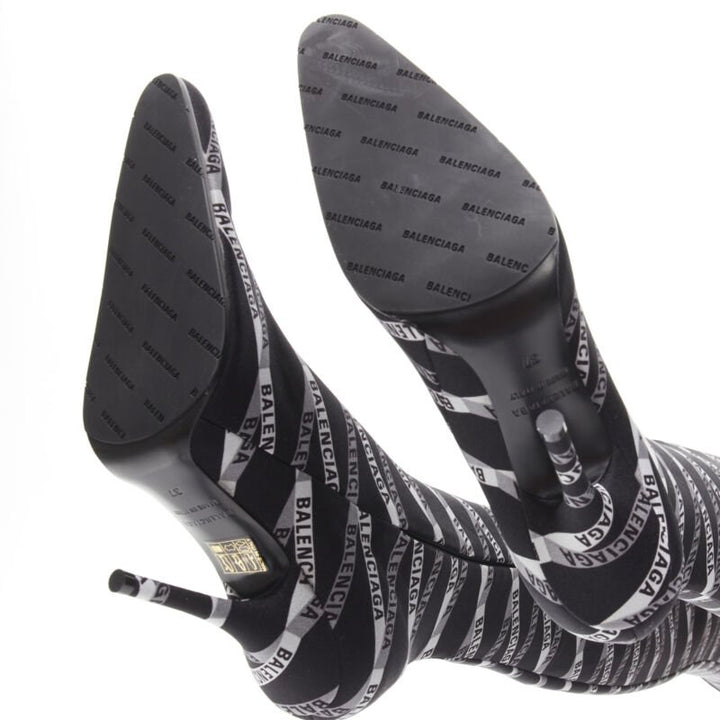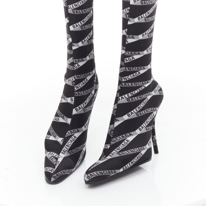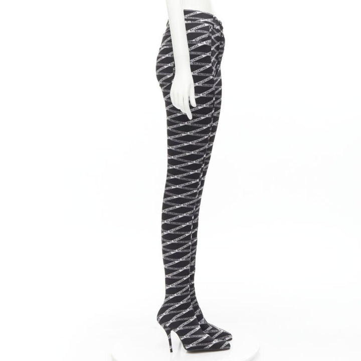 new BALENCIAGA Runway Demna Pantashoe black logo high heel boots pants IT38 EU37
