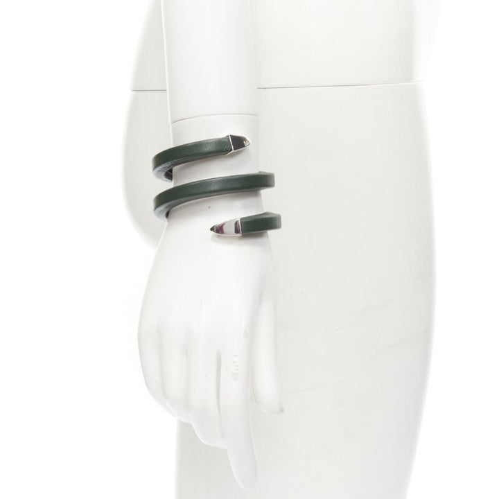 new BOTTEGA VENETA Spiral Coil forest green leather cuff bracelet