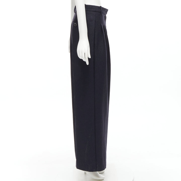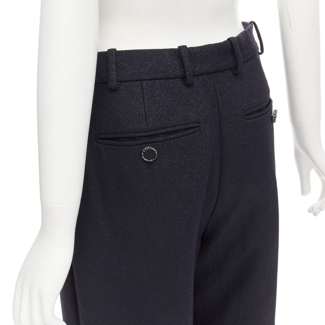 CHANEL metallic black pleated front chain trimmed wide leg pants FR40 M