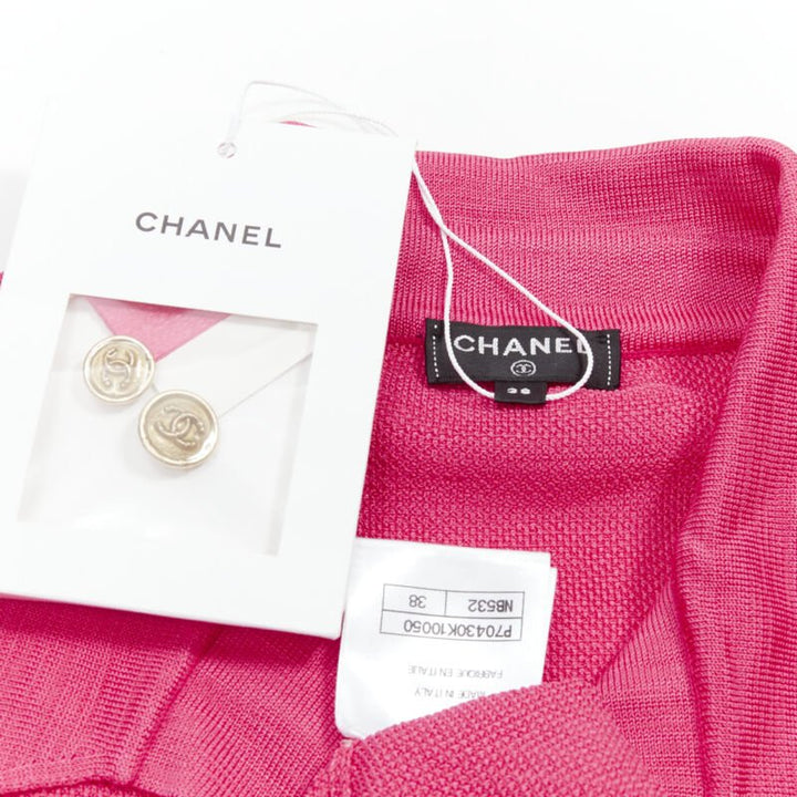 new CHANEL pink viscose knit gold CC button embroidery anglais polo dress FR38 M