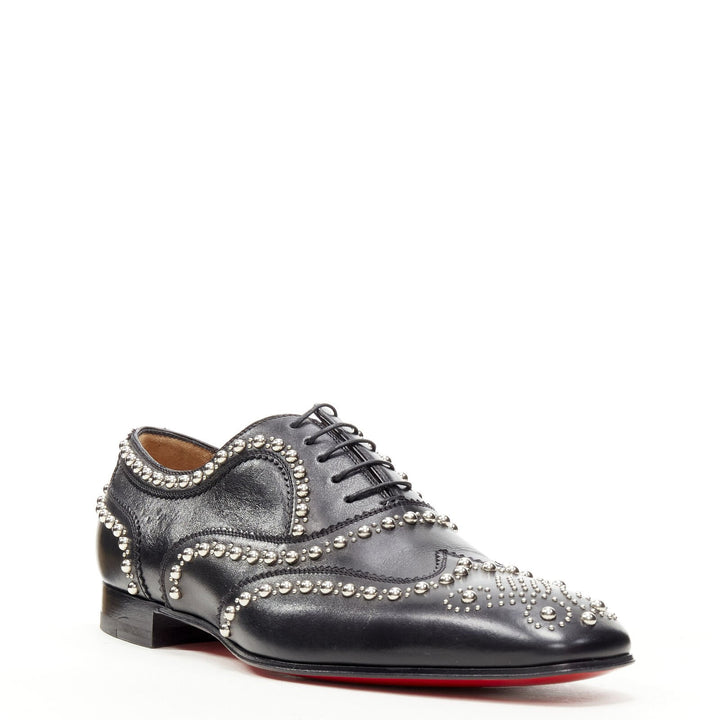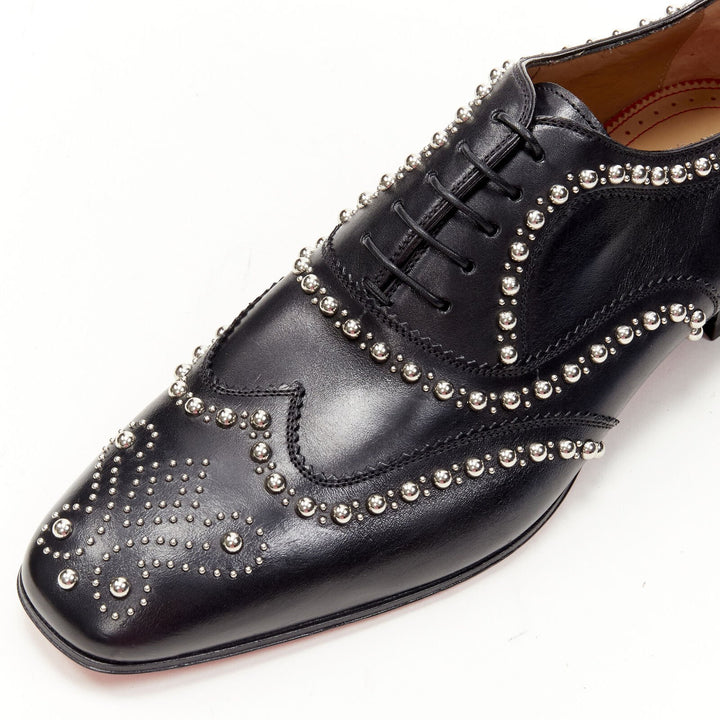 new CHRISTIAN LOUBOUTIN Charlie Clou black silver studded oxford brogue EU42