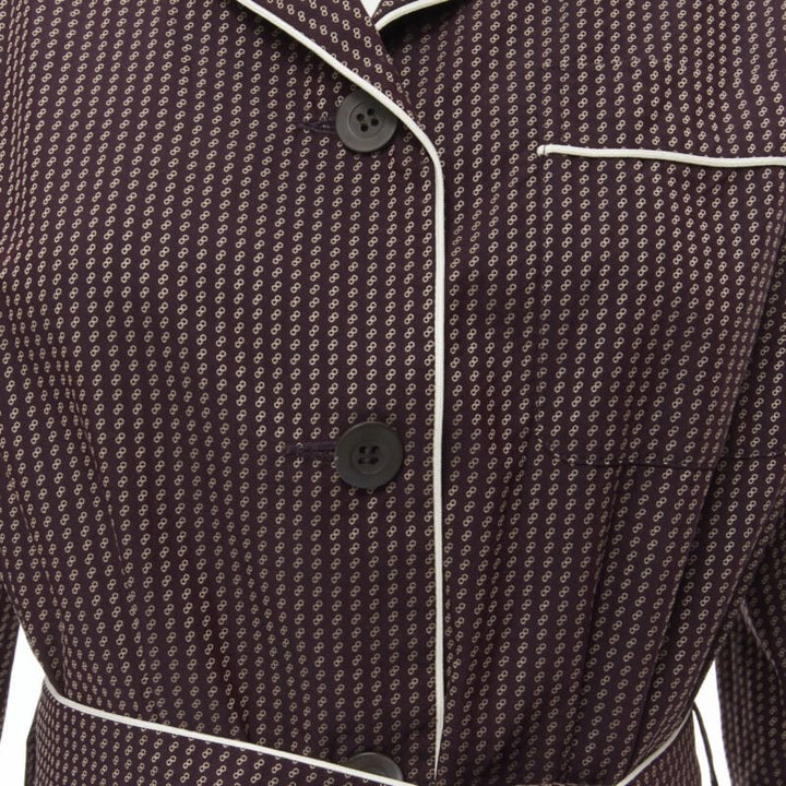 DRIES VAN NOTEN Daltos 100% cotton burgundy pyjama robe belted dress FR36 XS