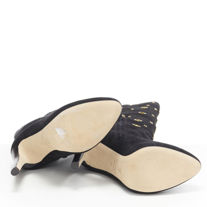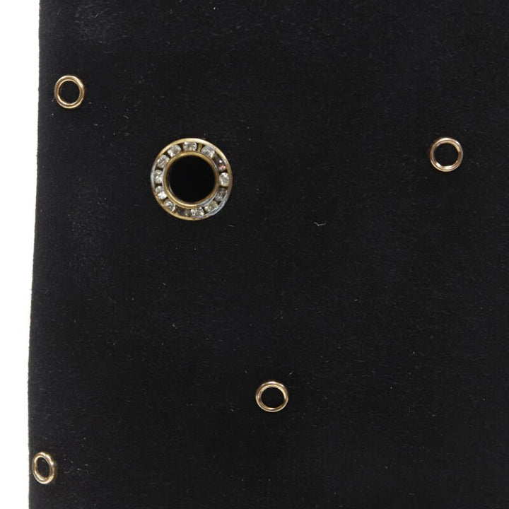 new GIUSEPPE ZANOTTI black suede gold crystal eyelet high heel tall boots EU37