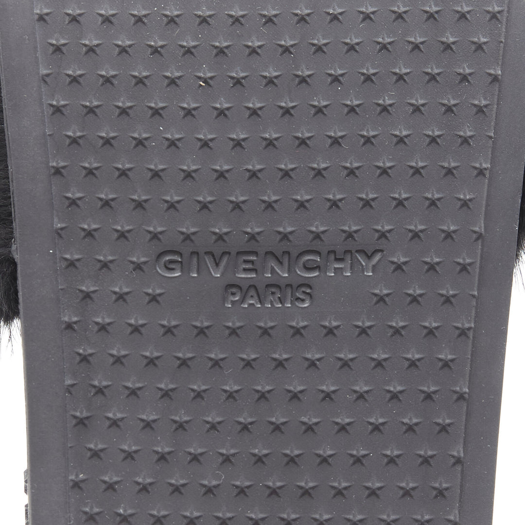 GIVENCHY black Vison Mink fur logo rubber molded footbed pool slides EU36