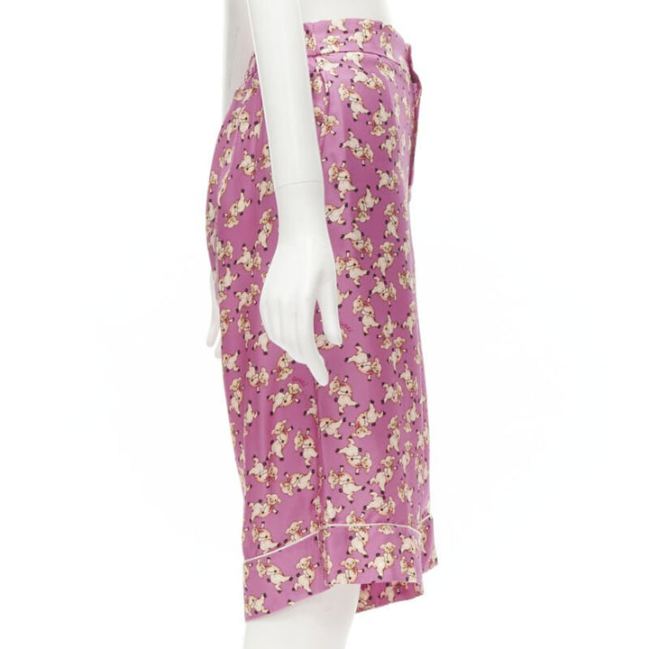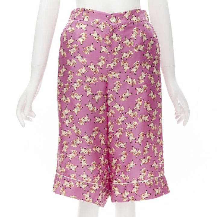 new GUCCI CNY 2019 100% silk pink piggy print cropped pajama shorts IT36 XS rare