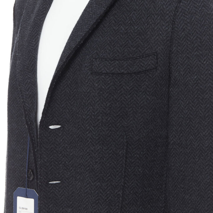 new HARRIS WHARF London Anthracite Herringbone Chestercoat wool coat EU46 S