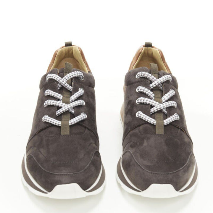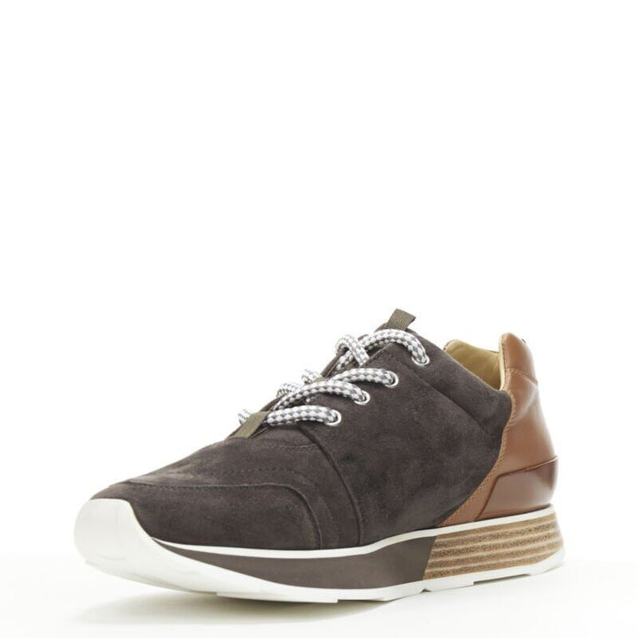 new HERMES Buster grey brown suede lace up wooden rubber sole low sneaker EU39.5