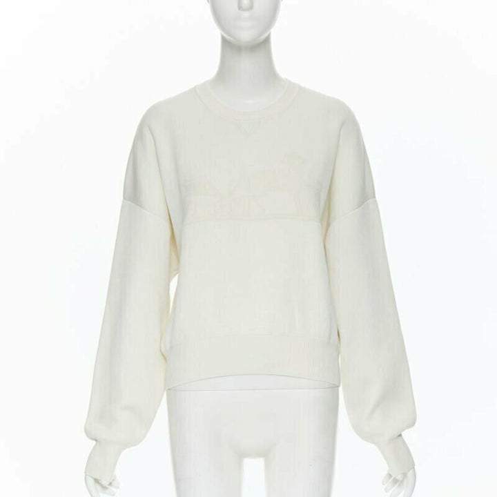 new HERMES ivory cream cashmere silk blend logo intarsia short sweater FR44 XL