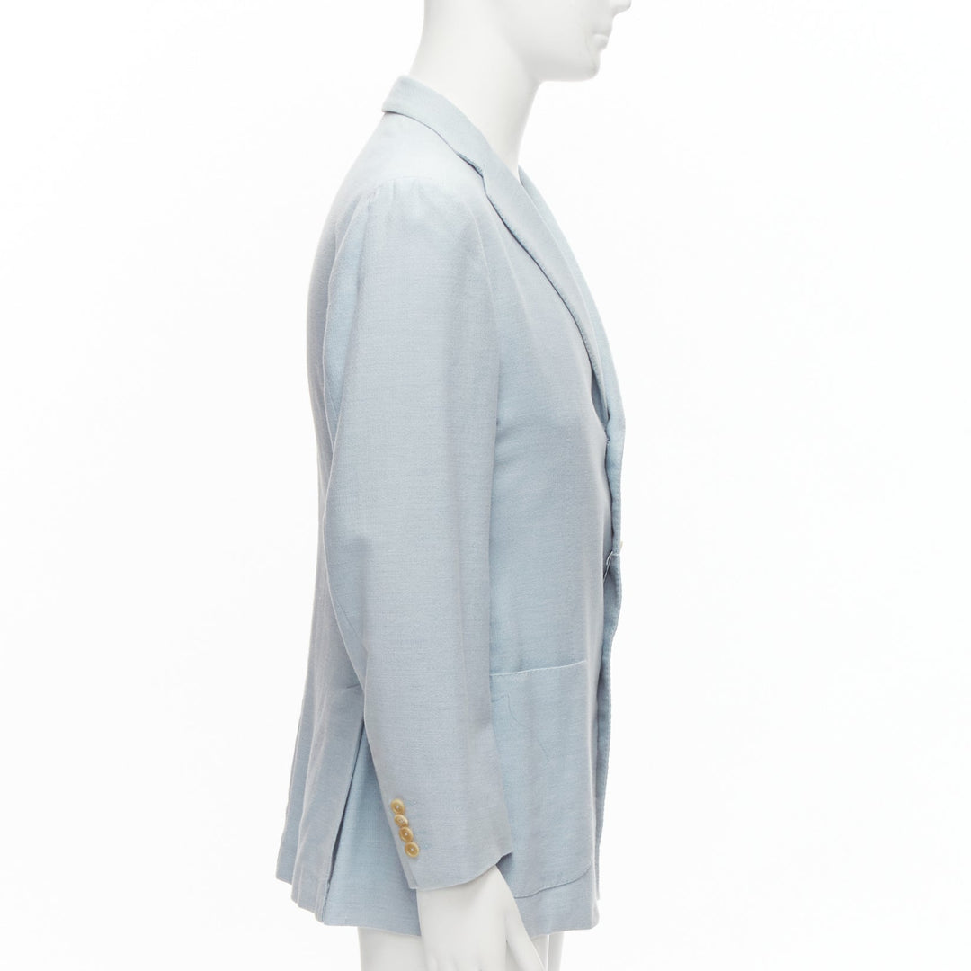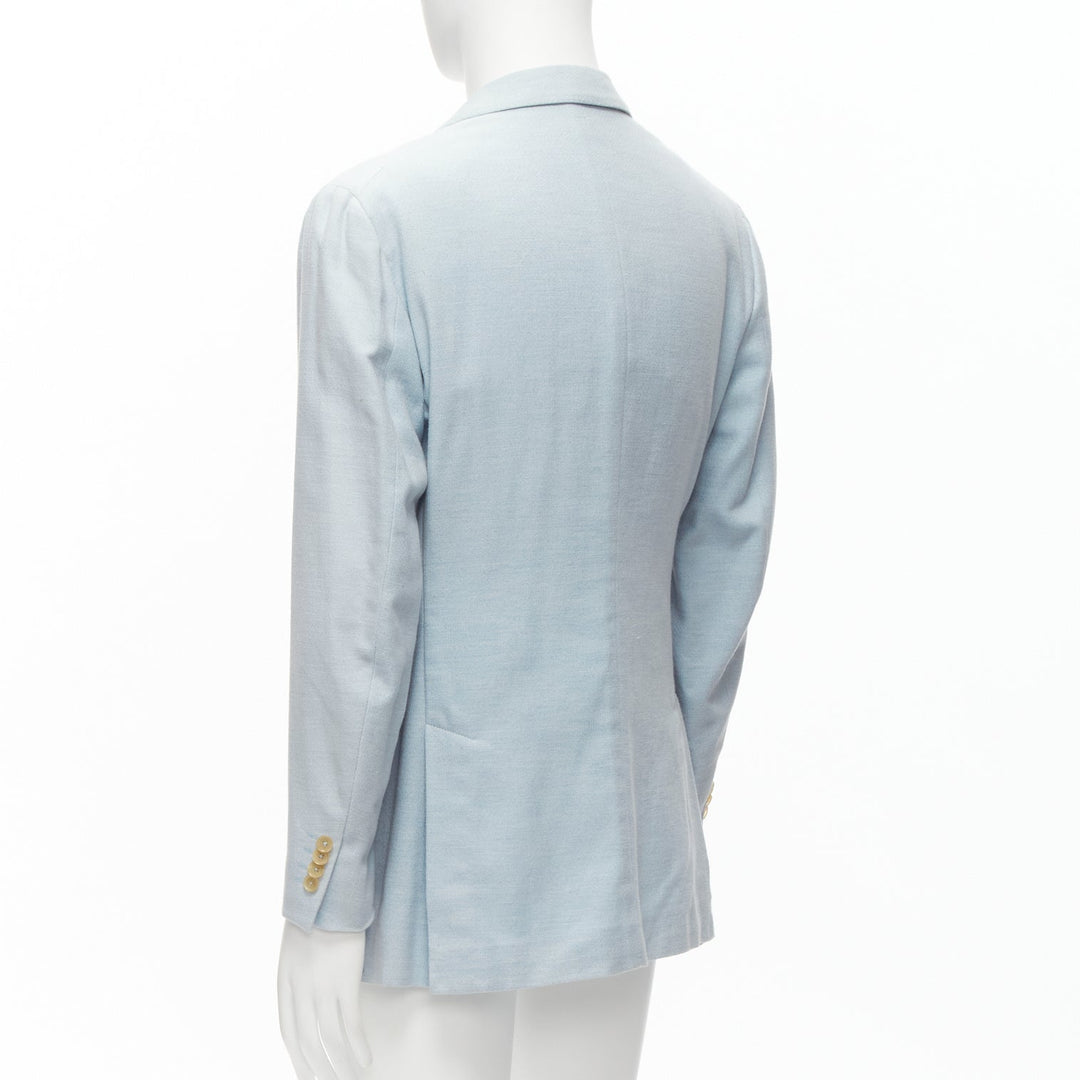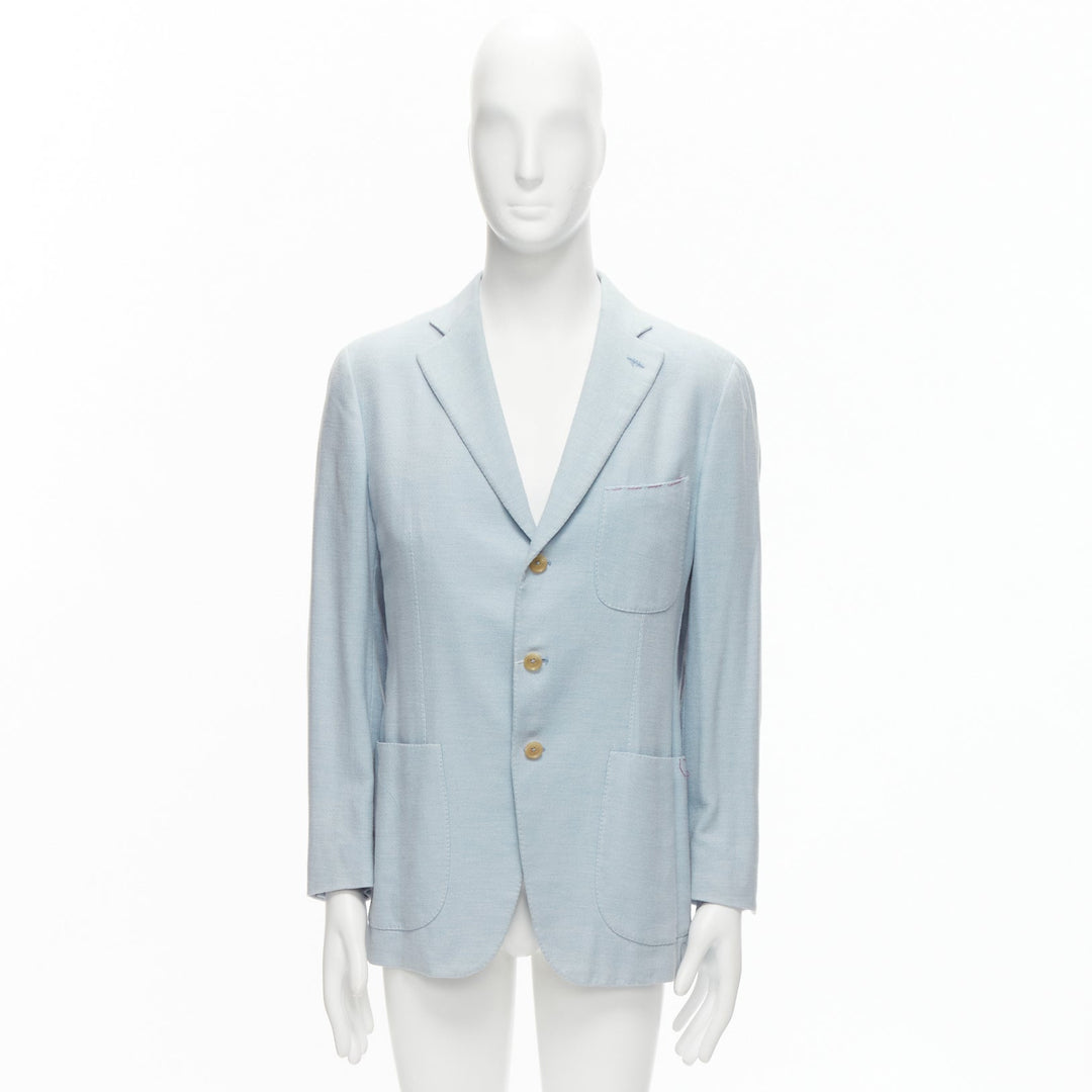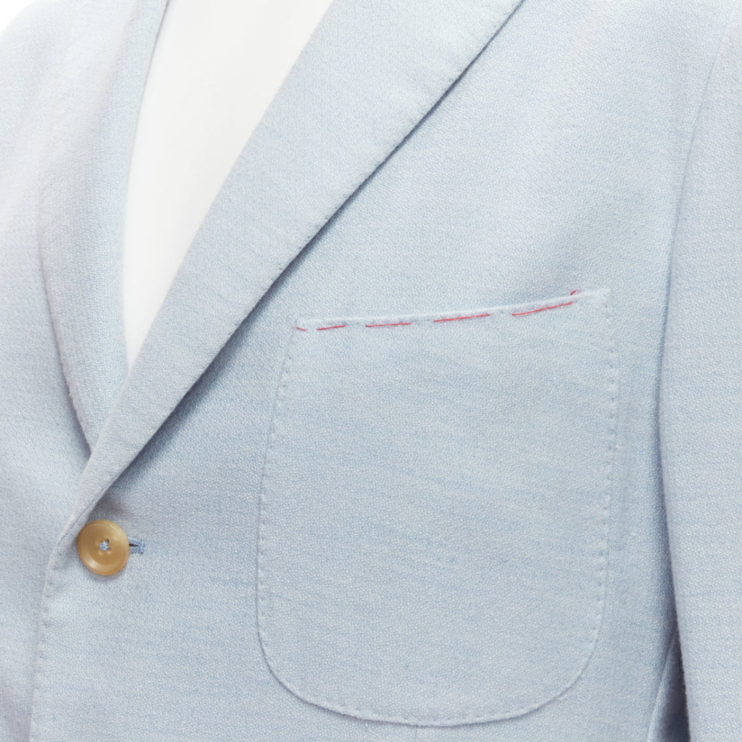 ISAIA Dustin 100% cotton light blue topstitch collar 3 pockets blazer IT50 L