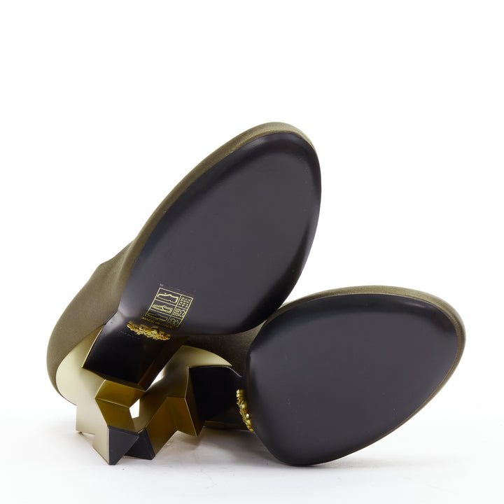 new PRADA Lightning Bolt green silk satin gold metal heel pump EU38.5