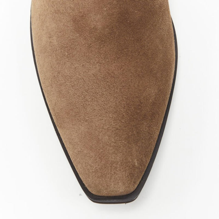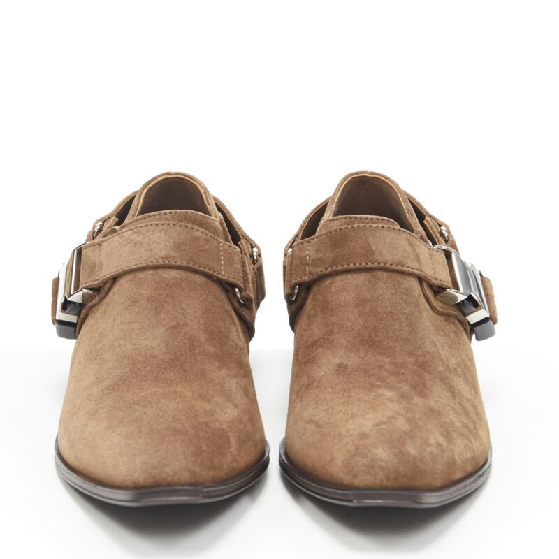 new PRADA Santiag brown suede logo buckle harness western brogue shoe EU36
